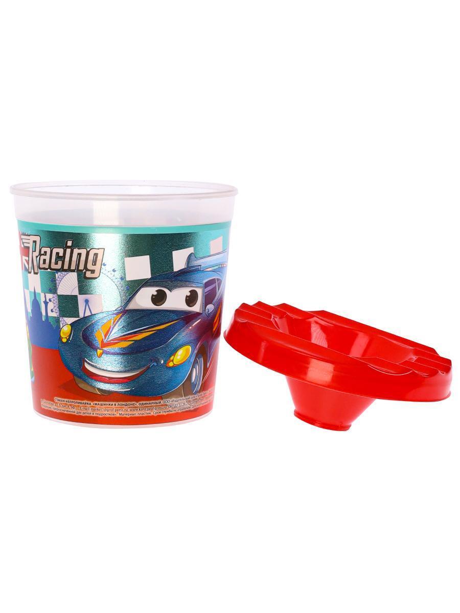 Стакан-непроливайка детский 'Машинки в Лондоне', пластик, светло-голубой/красный