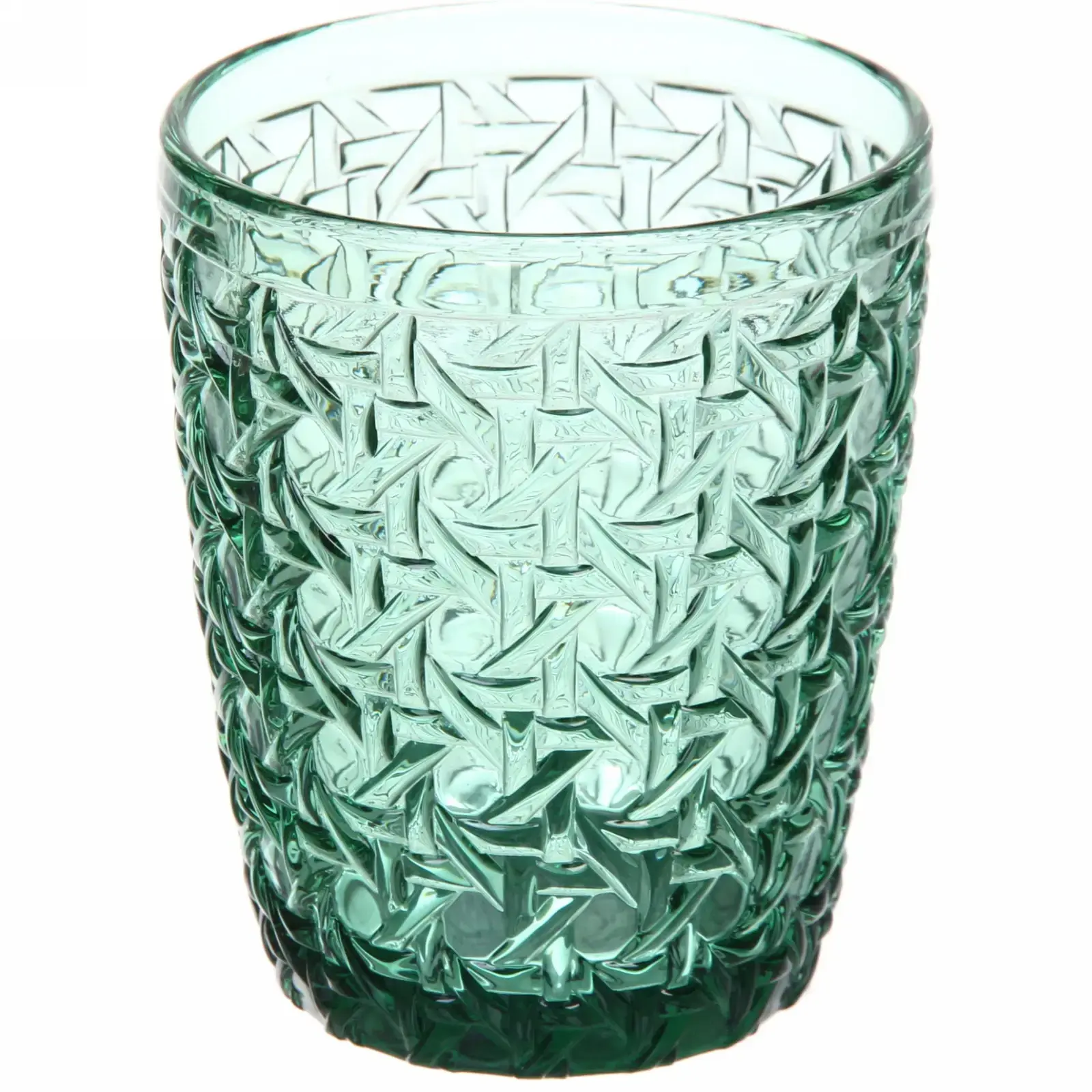 Стакан имеет объем 300 мл и выполнен из прозрачного стекла с зеленым оттенком. Его размеры идеально подходят для комфортного удержания в руке. Рельефный узор на поверхности не только красив, но и функционален, обеспечивая надежный захват. Этот стакан станет не только практичным, но и стильным элементом вашей посуды.