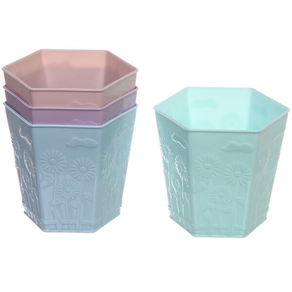 Пластиковое кашпо 'Цветы' станет идеальным решением для хранения мелочей или выращивания небольших растений. Его нежный пастельный декор с изящным рельефным рисунком украсит любую комнату.