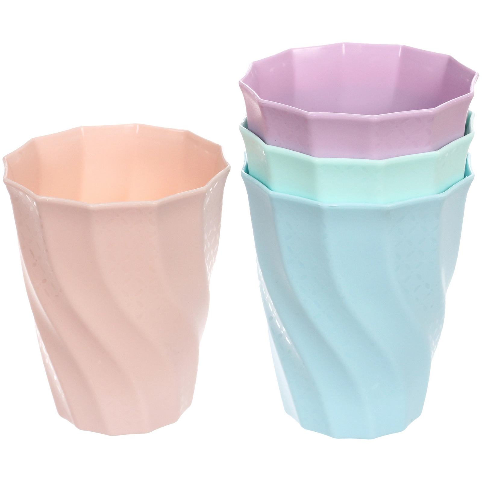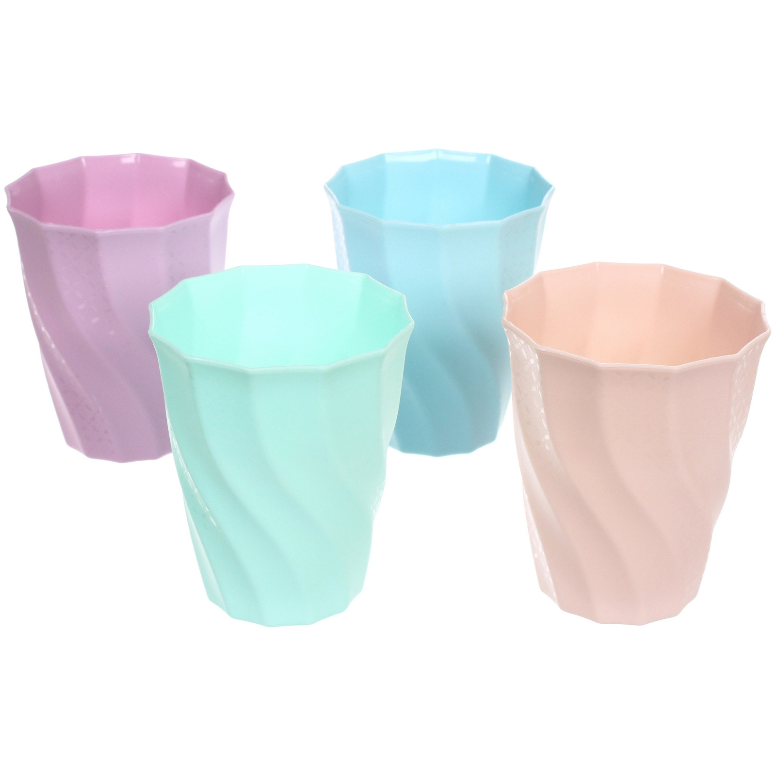Набор из 4 штук выполнен в приятных оттенках: розовом, фиолетовом, мятном и голубом. Такое сочетание освежает сервировку стола и помогает легко различать стаканы во время застолья или пикника.