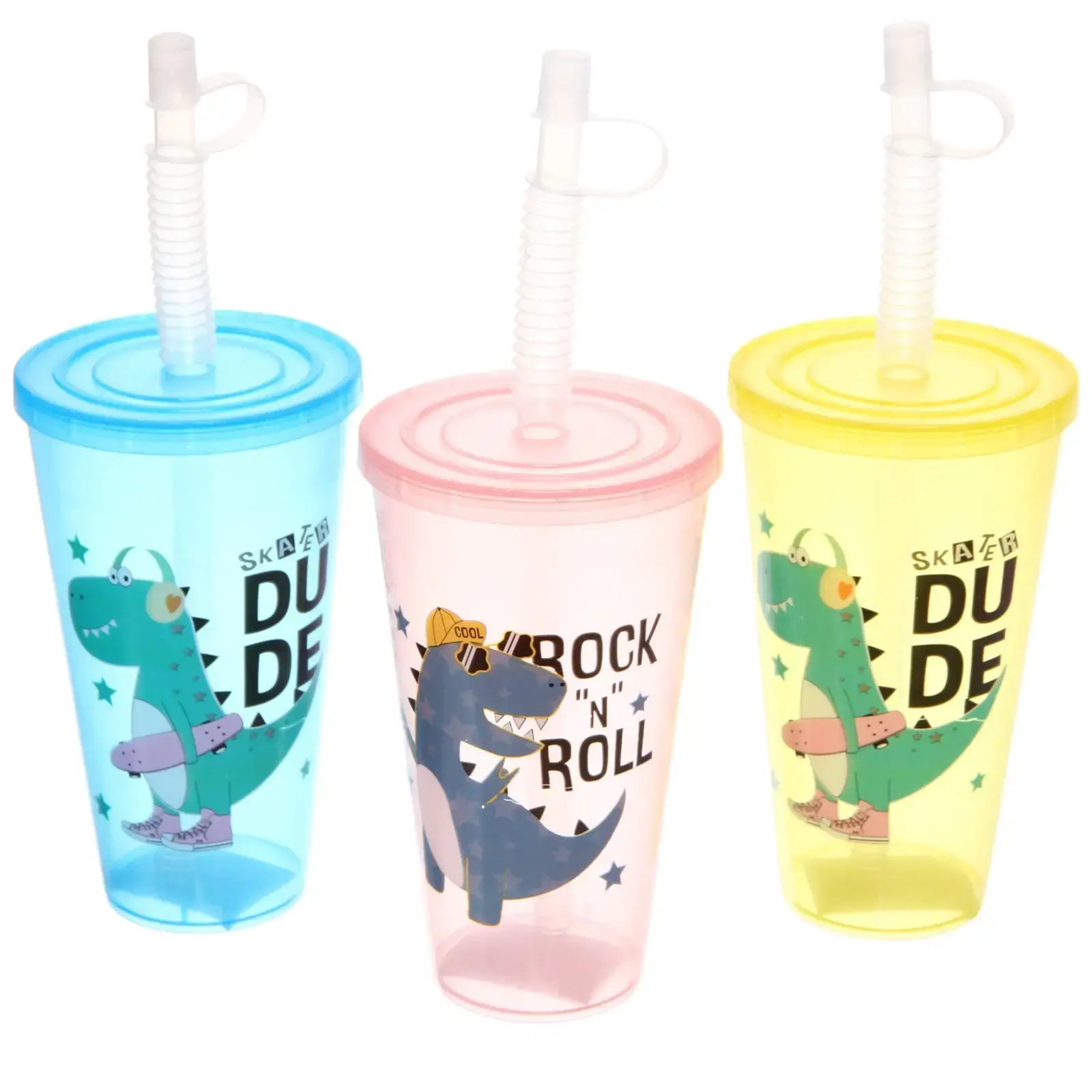 Пластиковый стакан объемом 380мл с герметичной крышкой и трубочкой — это практичное решение для напитков в дороге или дома. Яркие принты с динозаврами создают отличное настроение и привлекают внимание.