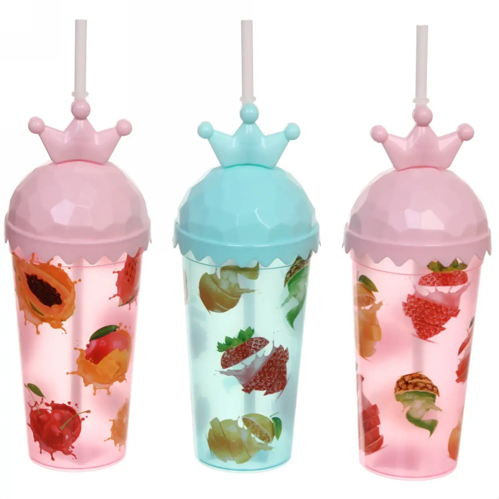Стакан пластиковый 400мл 'Экзотические фрукты', с трубочкой и короной, яркий дизайн