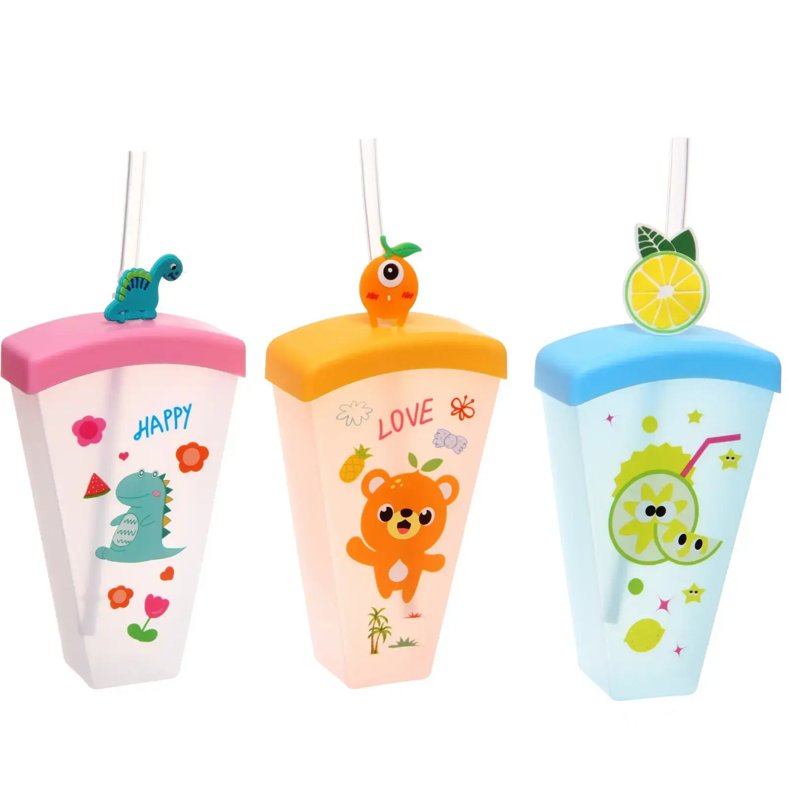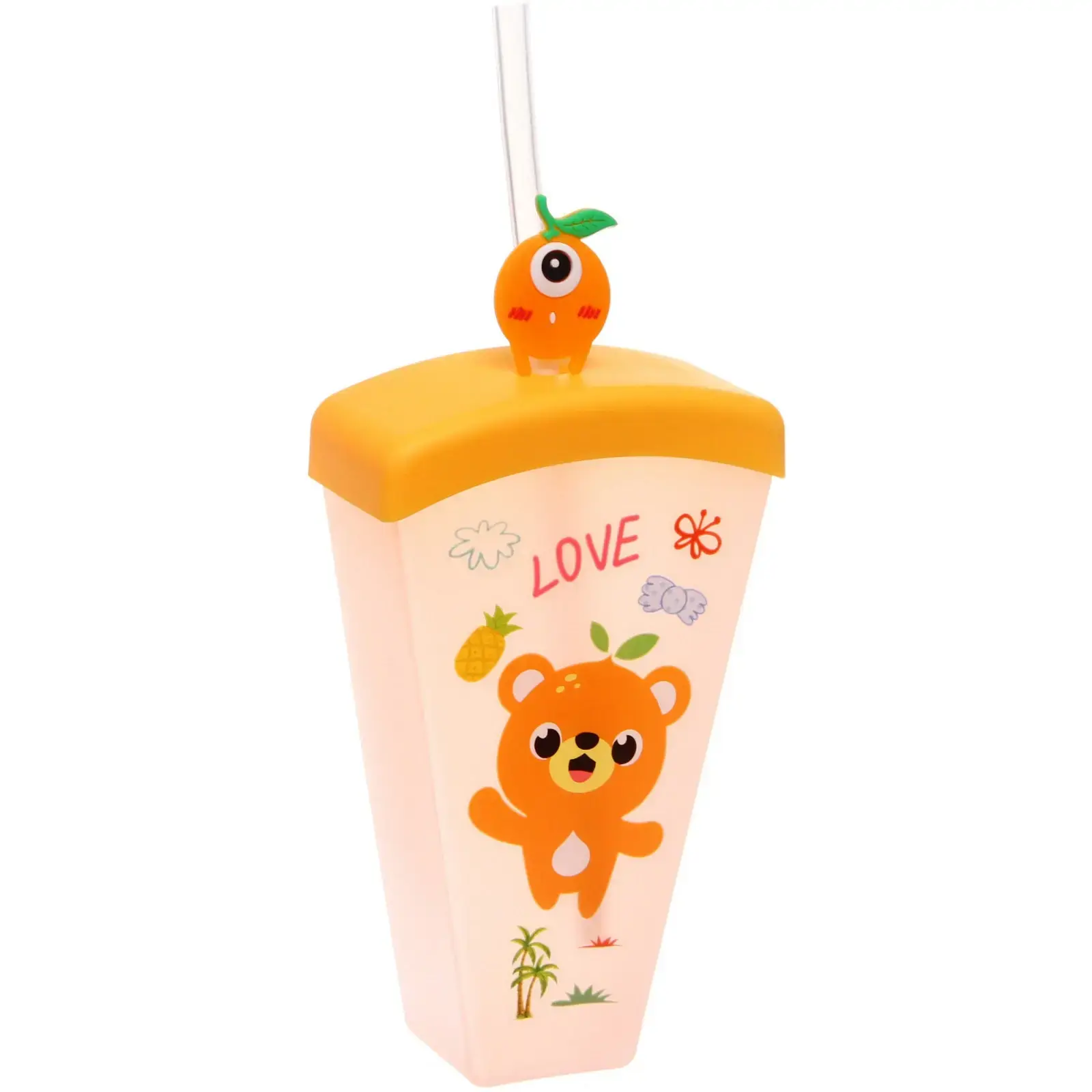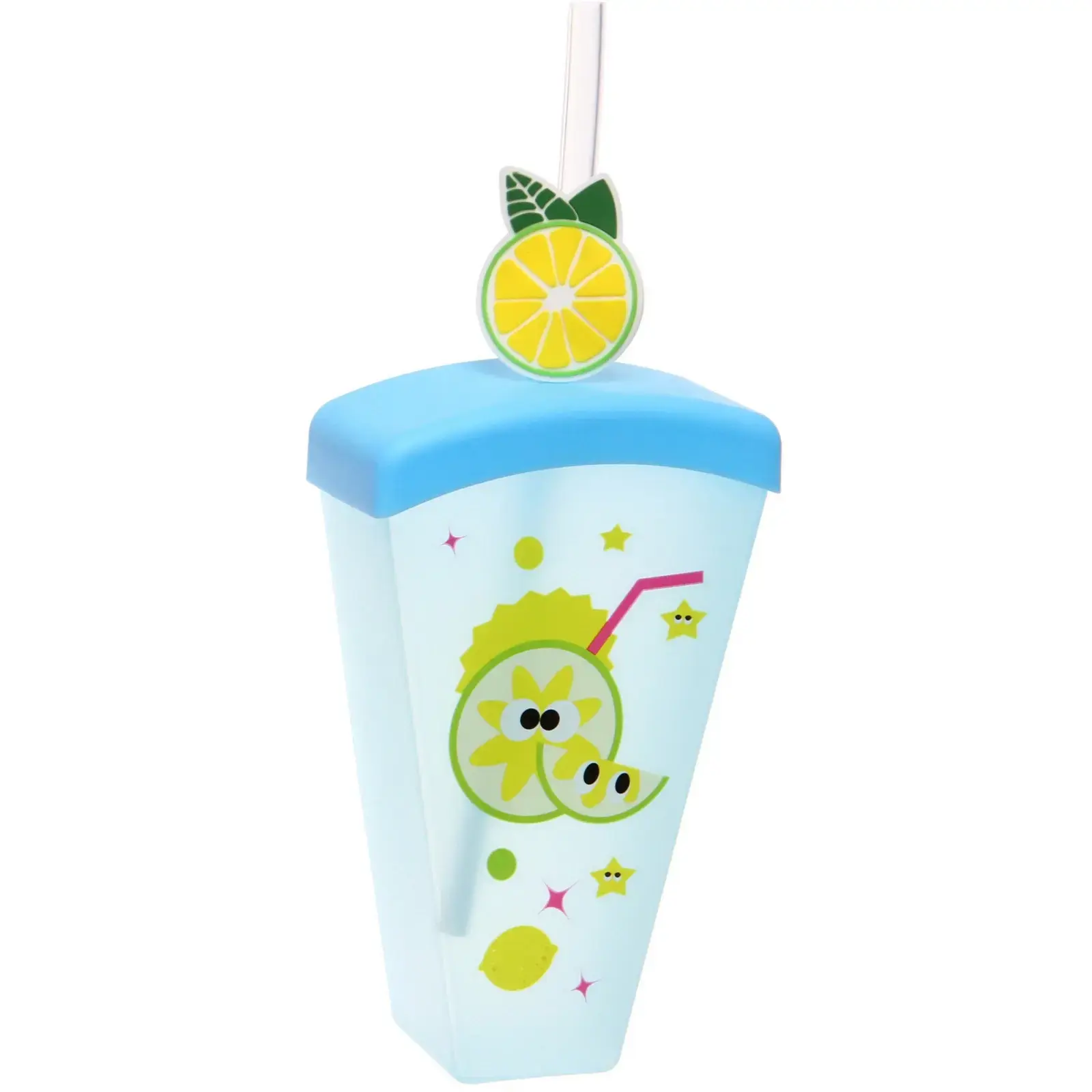 Стакан пластиковый 400 мл, 1шт., «Свежесть лета» с трубочкой, детский дизайн, разноцветный принт