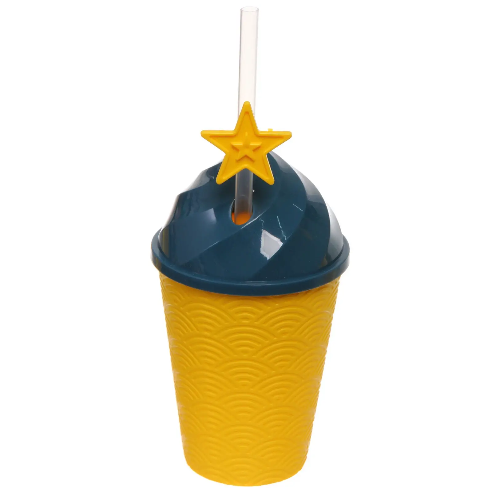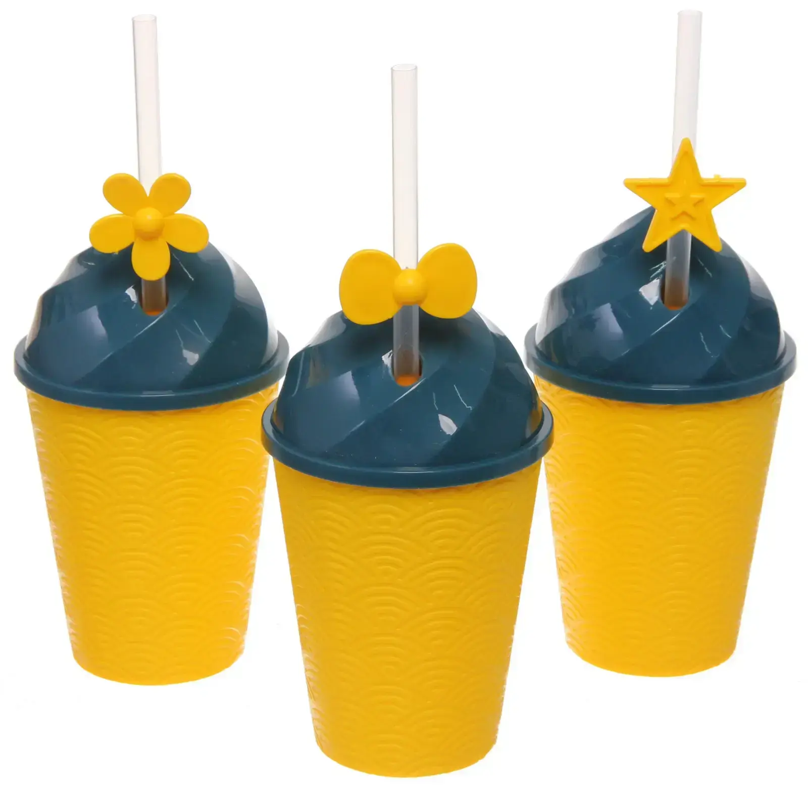 Стакан для напитков 440 мл «Мороженое» с трубочкой, пластик, разноцветные крышки с декором