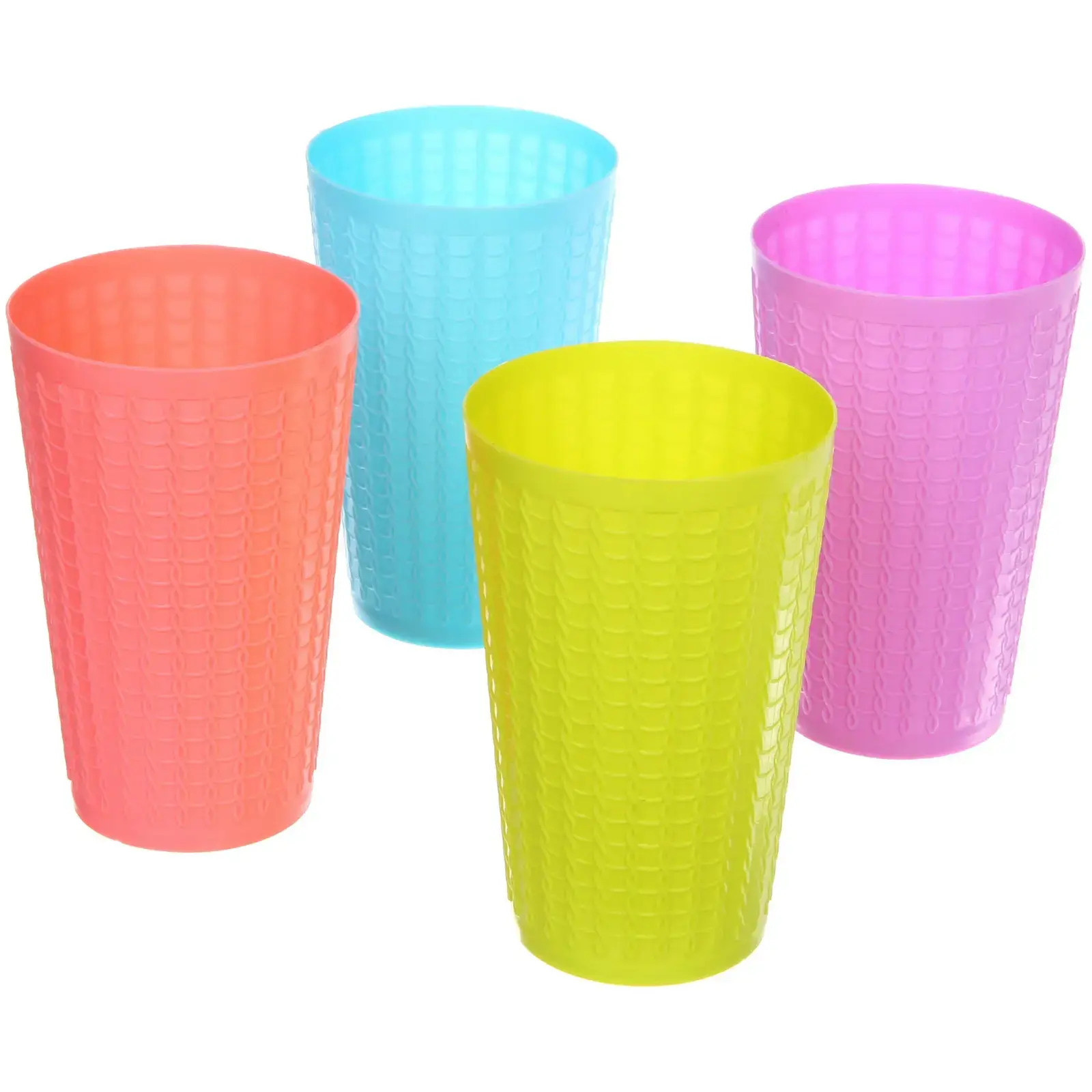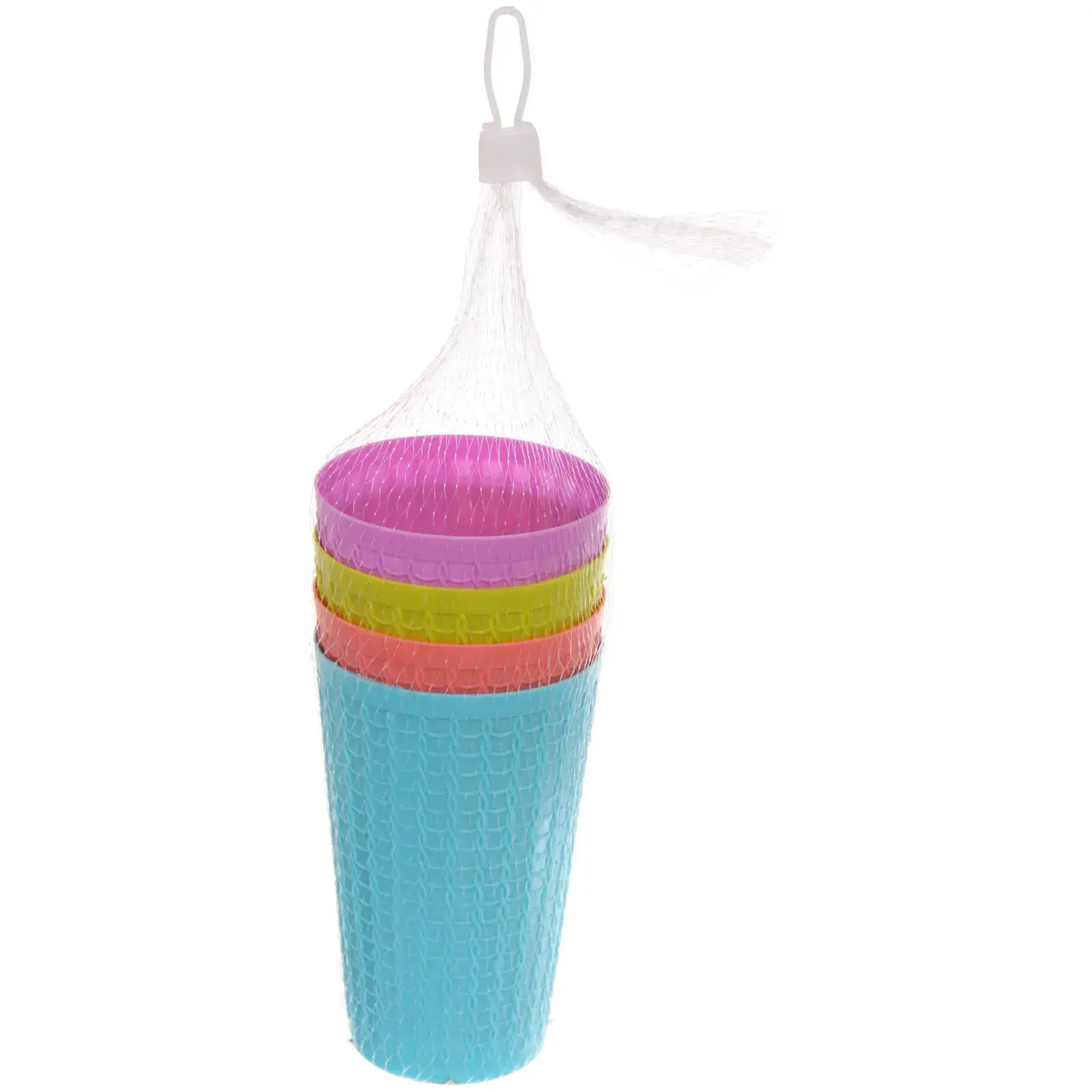 В наборе вы получите 4 стакана, каждый из которых выполнен из качественного пластика. Они имеют стандартный размер, что делает их универсальными для использования в повседневной жизни. Стаканы упакованы в удобную сетку, что облегчает их транспортировку и хранение.