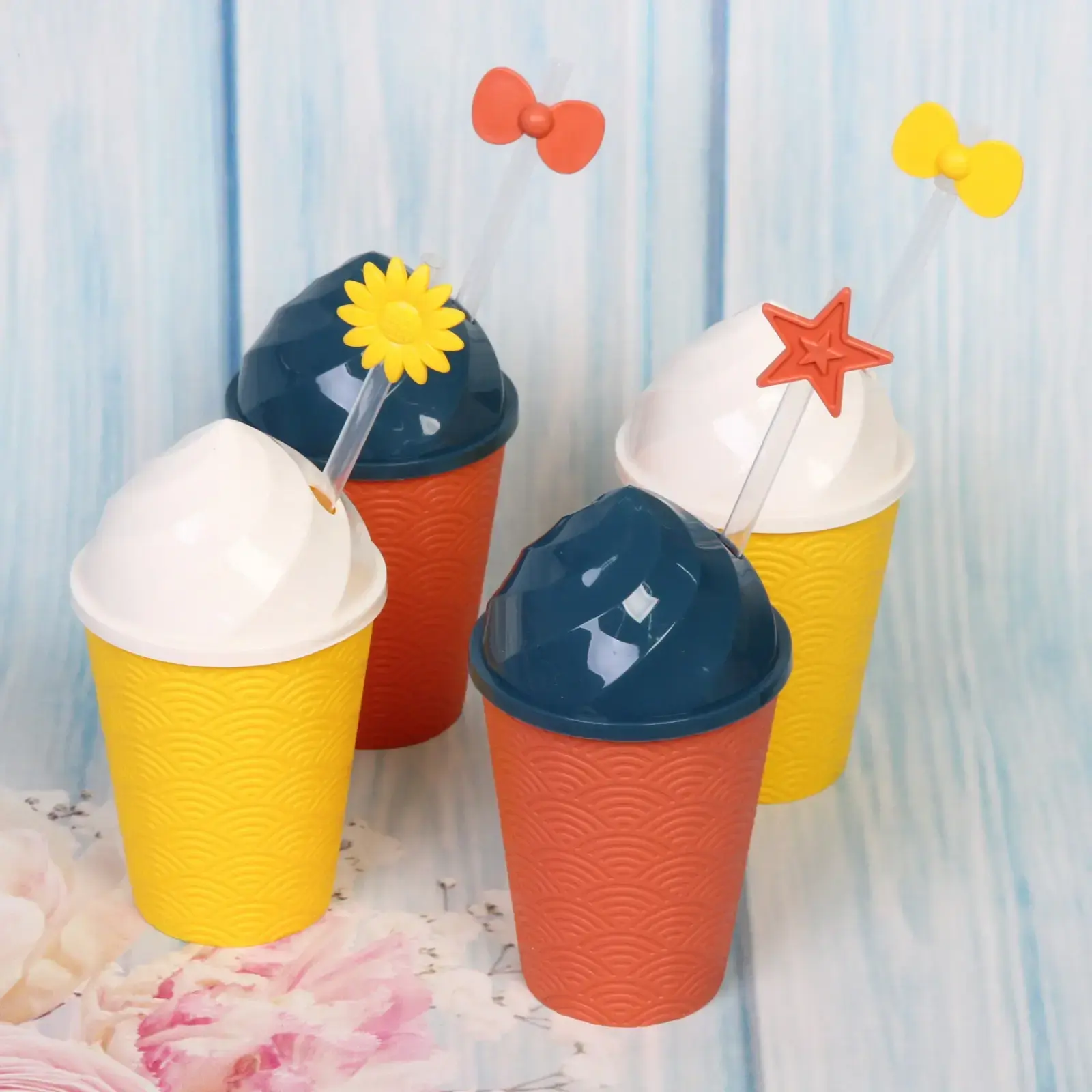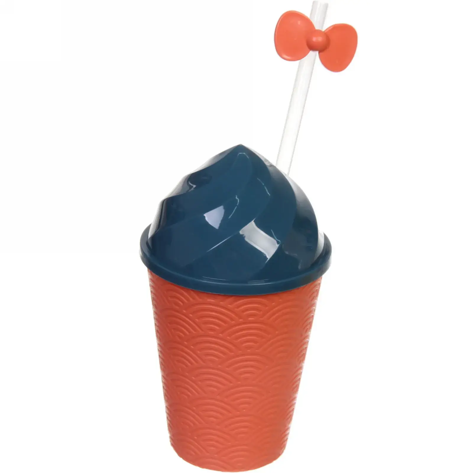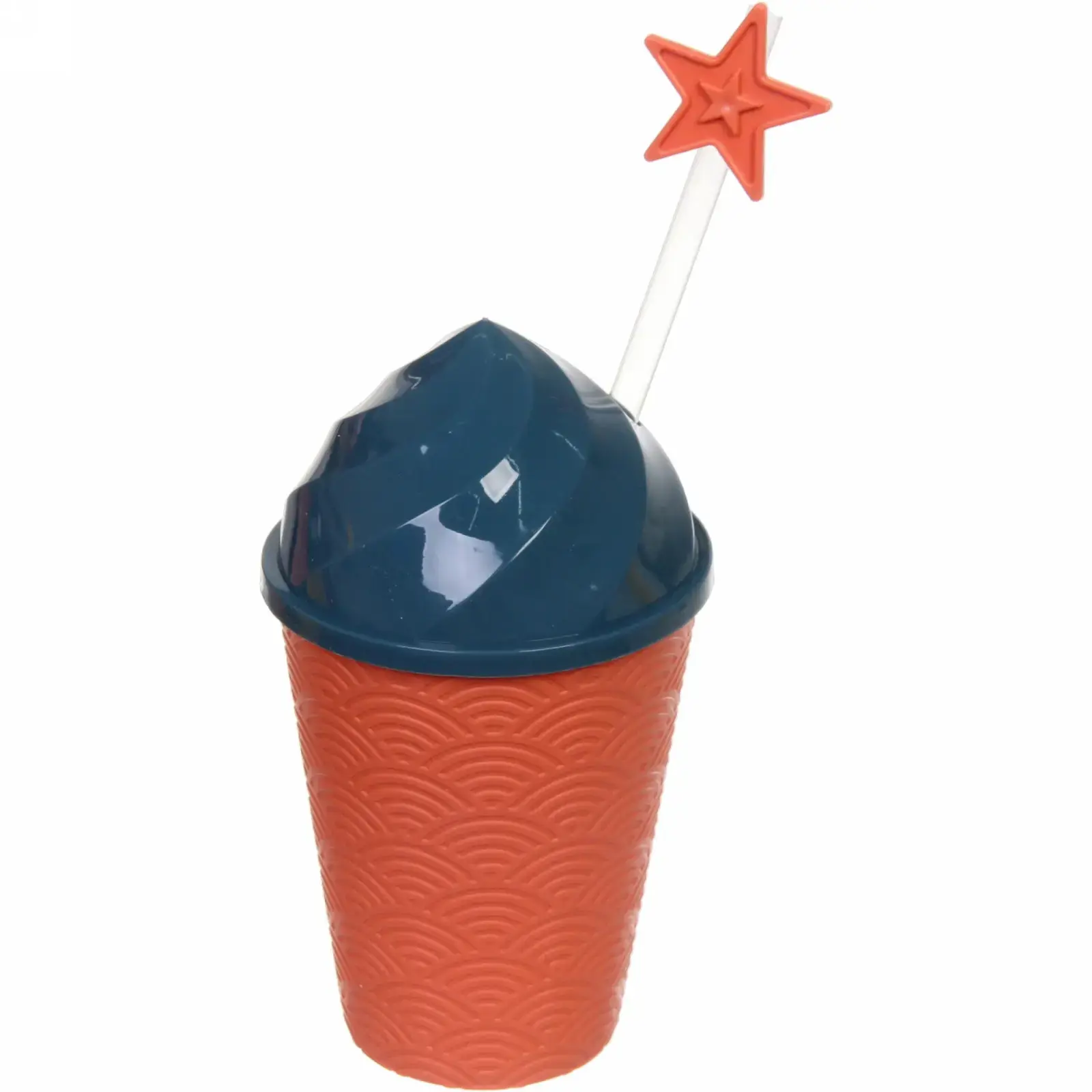 Стакан удобно держать в руке благодаря его эргономичной форме. Крышка с трубочкой предотвращает проливание и позволяет наслаждаться напитком в любом месте — на пикнике, на пляже или в парке. Яркие цвета стаканов делают их привлекательными для детей и взрослых, а также отлично подходят для тематических вечеринок.