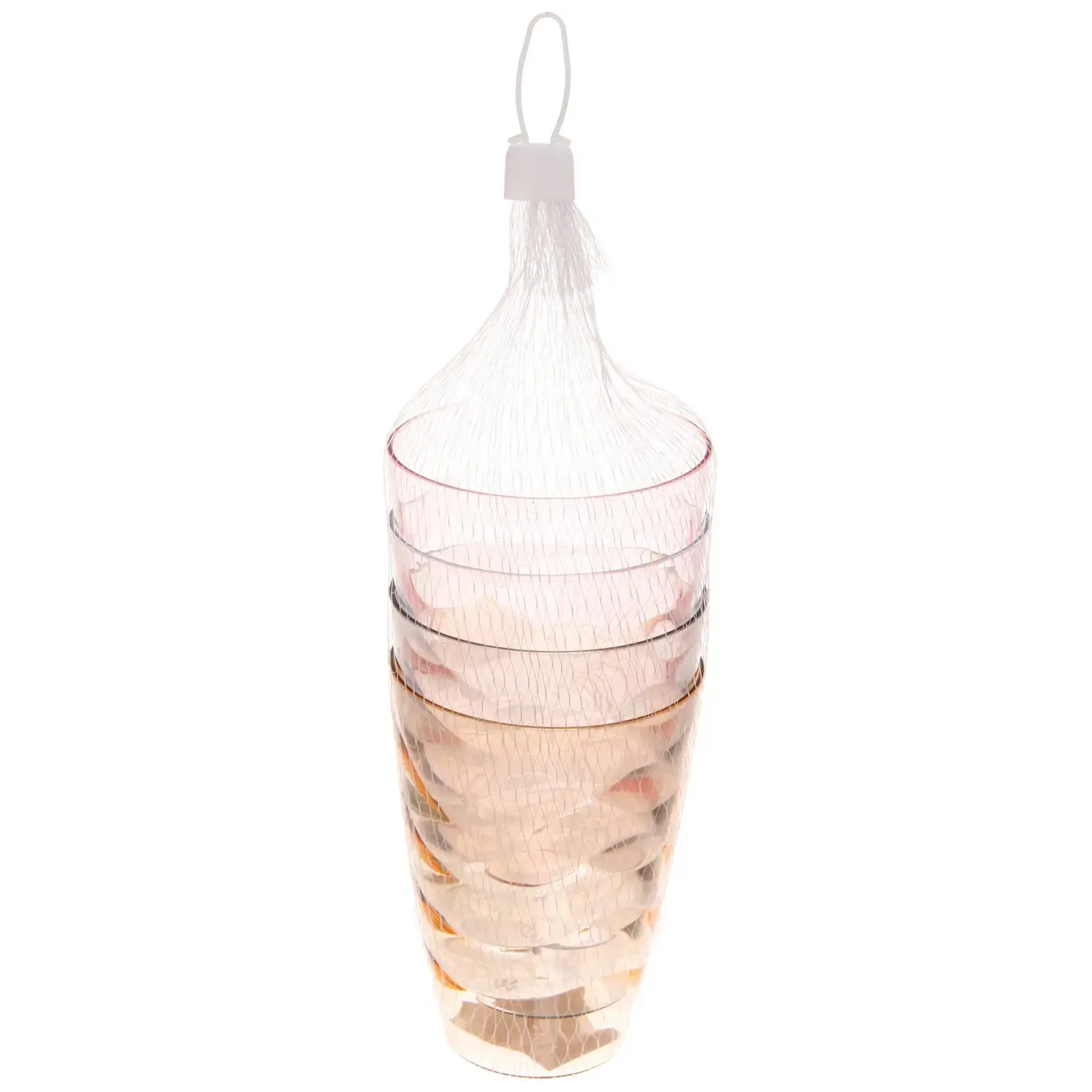 Каждый стакан имеет высоту около 15 см и диаметр верхней части около 7 см. Они выполнены из прочного пластика, что делает их легкими и удобными для повседневного использования. Набор из 4 стаканов упакован в сетку, что позволяет удобно хранить их вместе и использовать по мере необходимости.