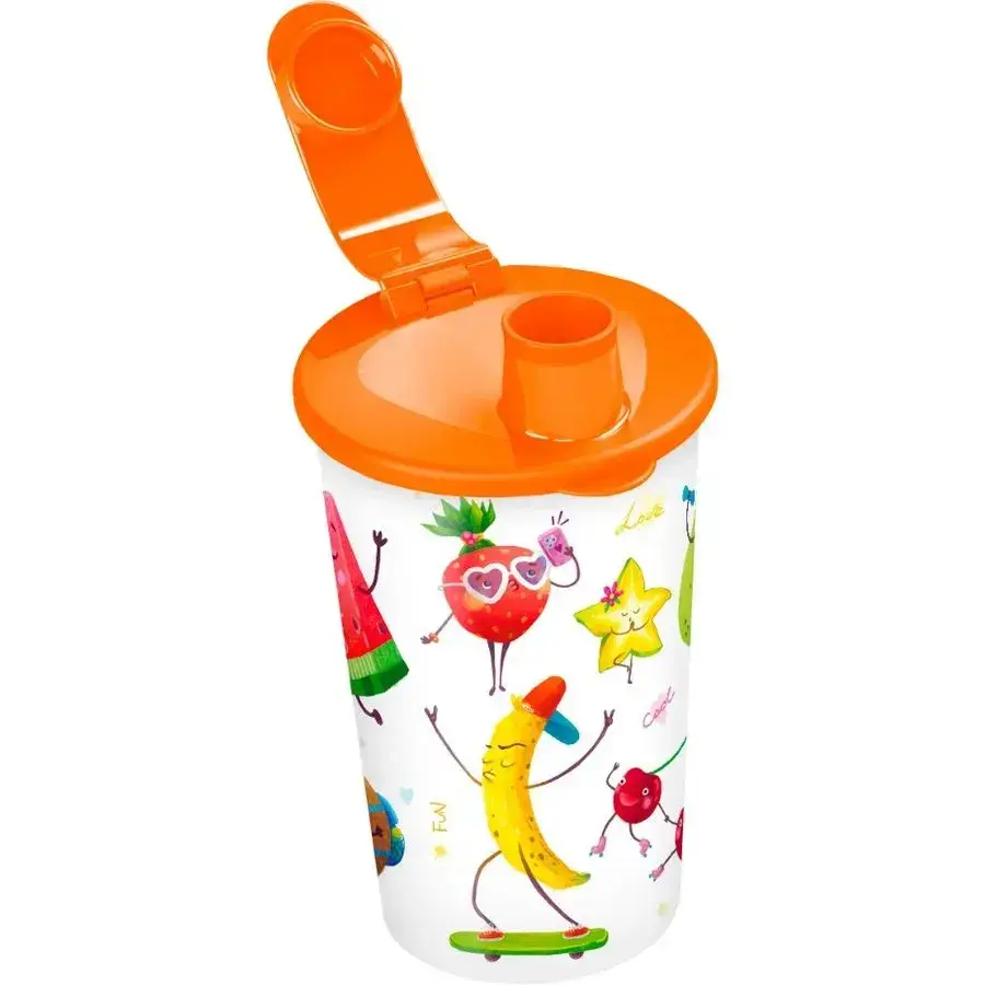 Детский стакан с клапаном 'Фруктовая вечеринка', 400 мл, оранжевый, безопасный пластик