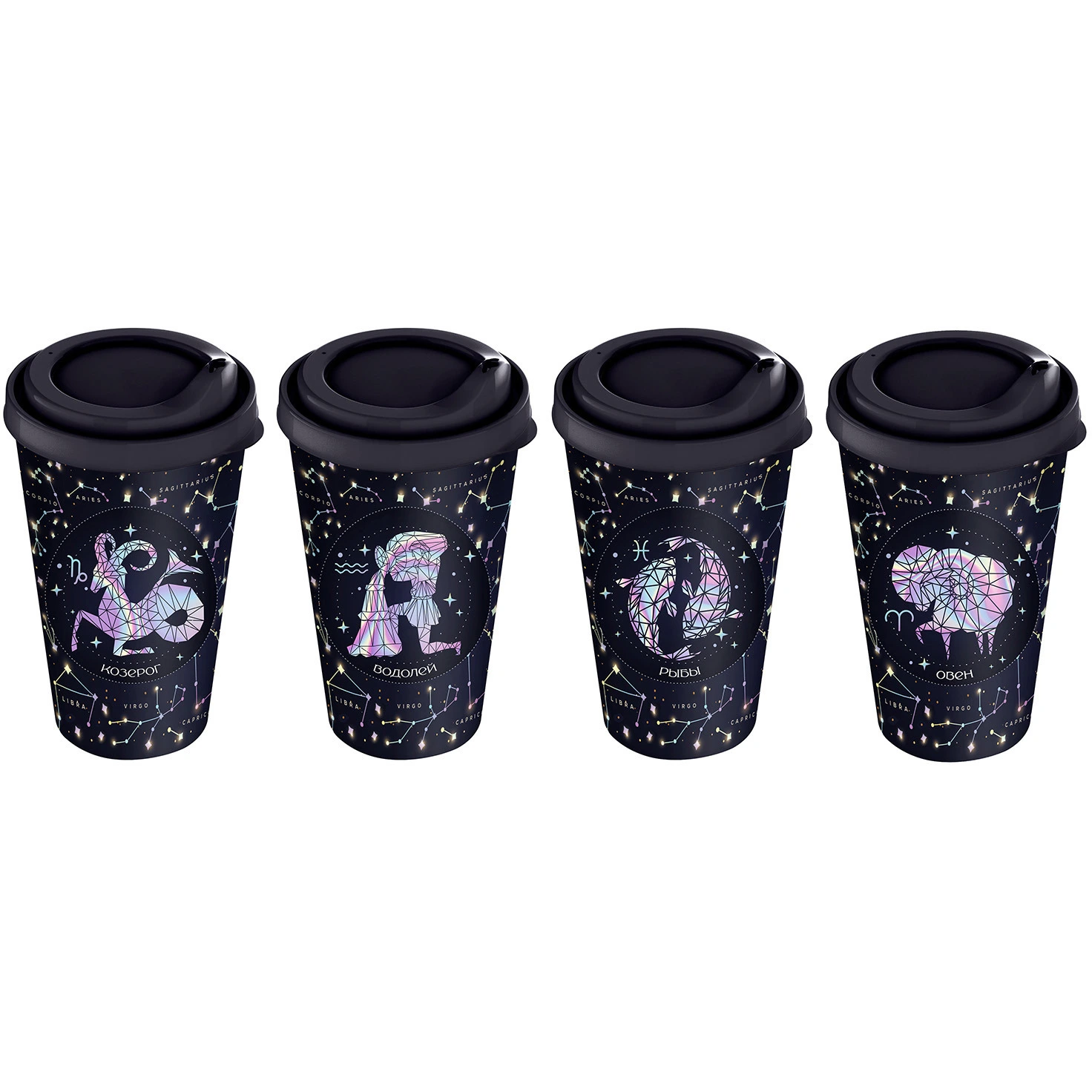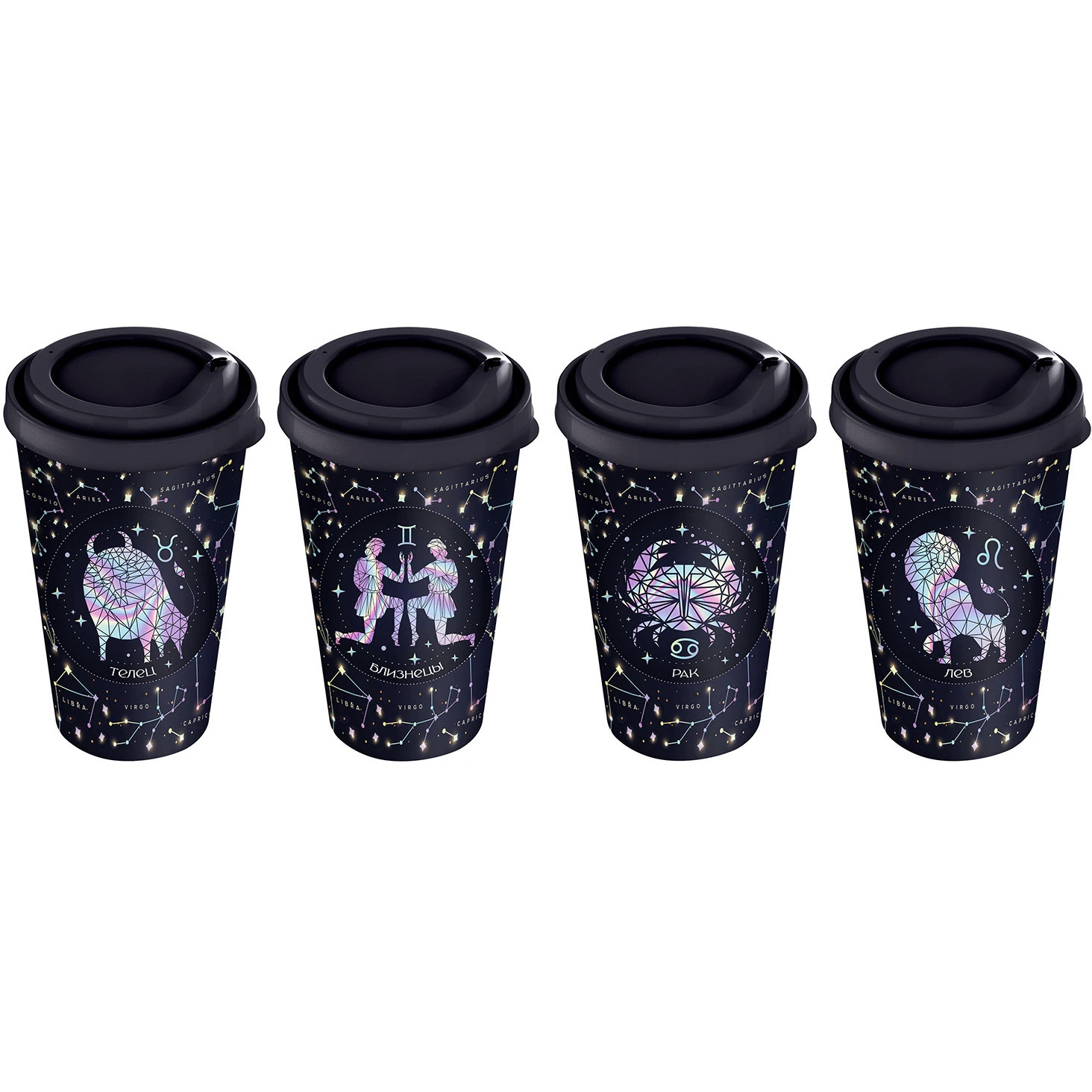 Стакан имеет стандартный диаметр, что позволяет ему удобно помещаться в подстаканники автомобилей. Его стильный синий цвет и уникальный декор с изображениями знаков зодиака делают его не только практичным, но и стильным аксессуаром. Размер стакана идеально подходит для порции вашего любимого напитка, а легкий и прочный материал обеспечивает долговечность использования.