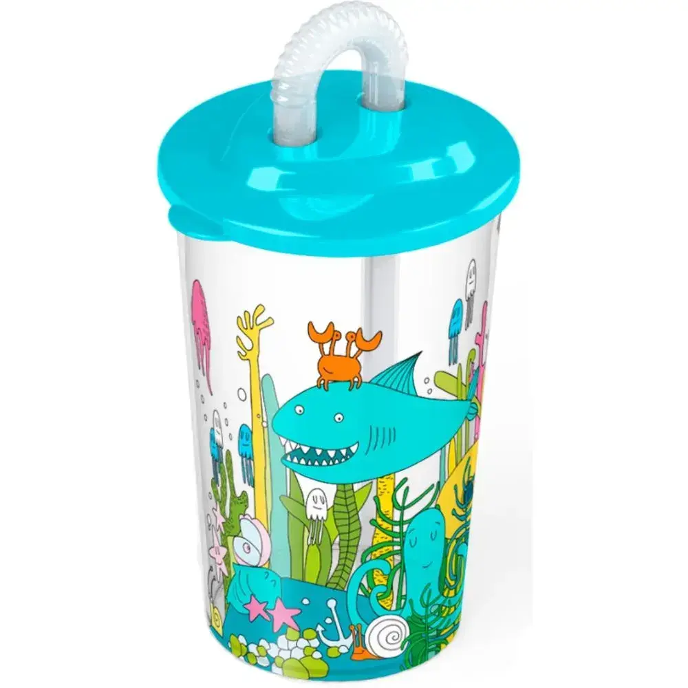 Стакан с трубочкой "Морской мир" 400мл, голубой, пластик, для детей