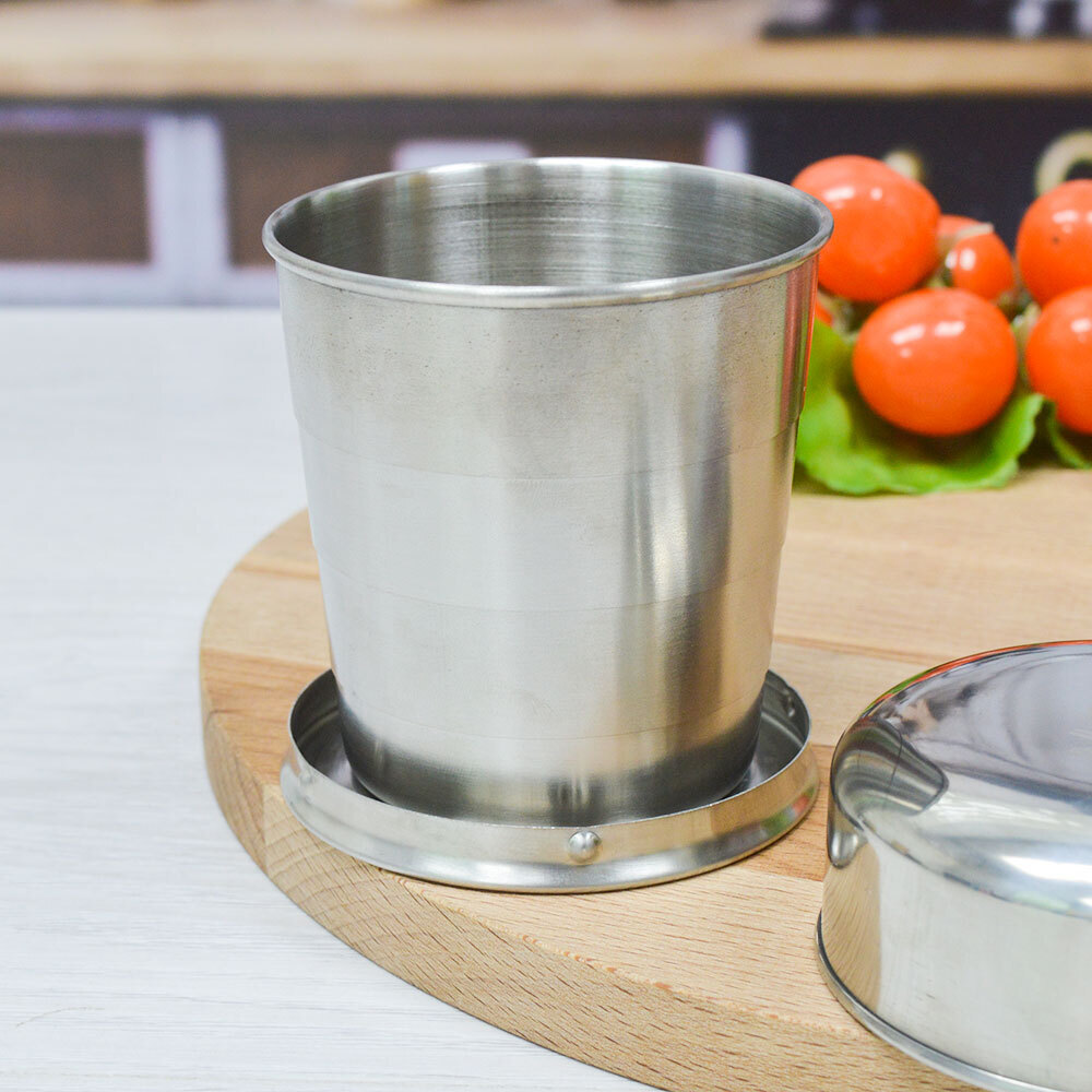 Складной стакан 'Турист' объемом 200 мл — это ваш надежный помощник в путешествиях и на природе. Изготовленный из нержавеющей стали, он сочетает в себе прочность и легкость, что делает его идеальным для кемпинга, походов и пикников. Благодаря компактным размерам, стакан легко помещается в рюкзак или карман, что позволяет всегда иметь его под рукой.