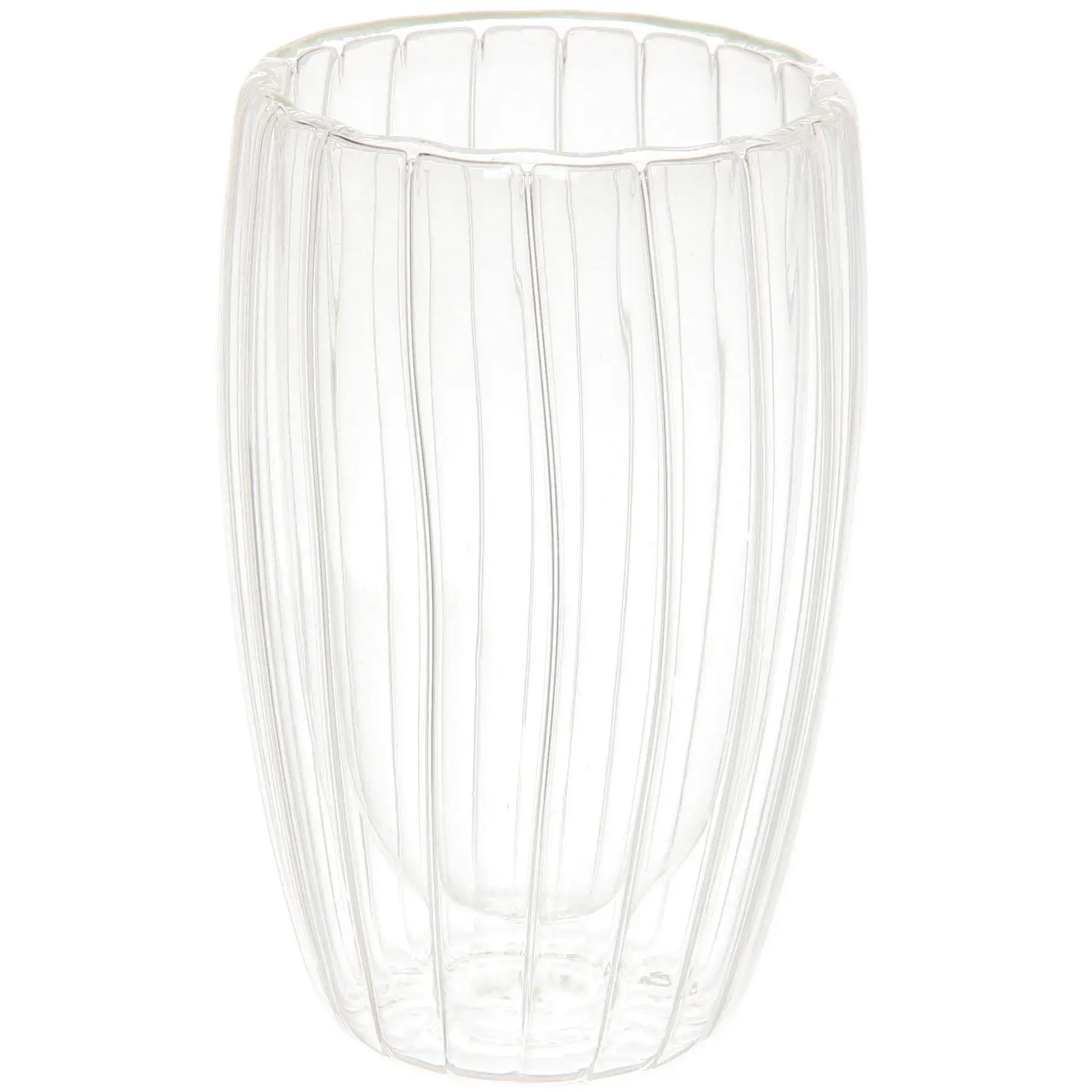 Стакан изготовлен из высококачественного стекла, что гарантирует долговечность и надежность. Двойные стенки предотвращают конденсацию, что делает его идеальным выбором для холодных напитков. Кроме того, прозрачный материал позволяет видеть содержимое, что добавляет визуального удовольствия при подаче. Стакан легко моется и подходит для использования в посудомоечной машине.