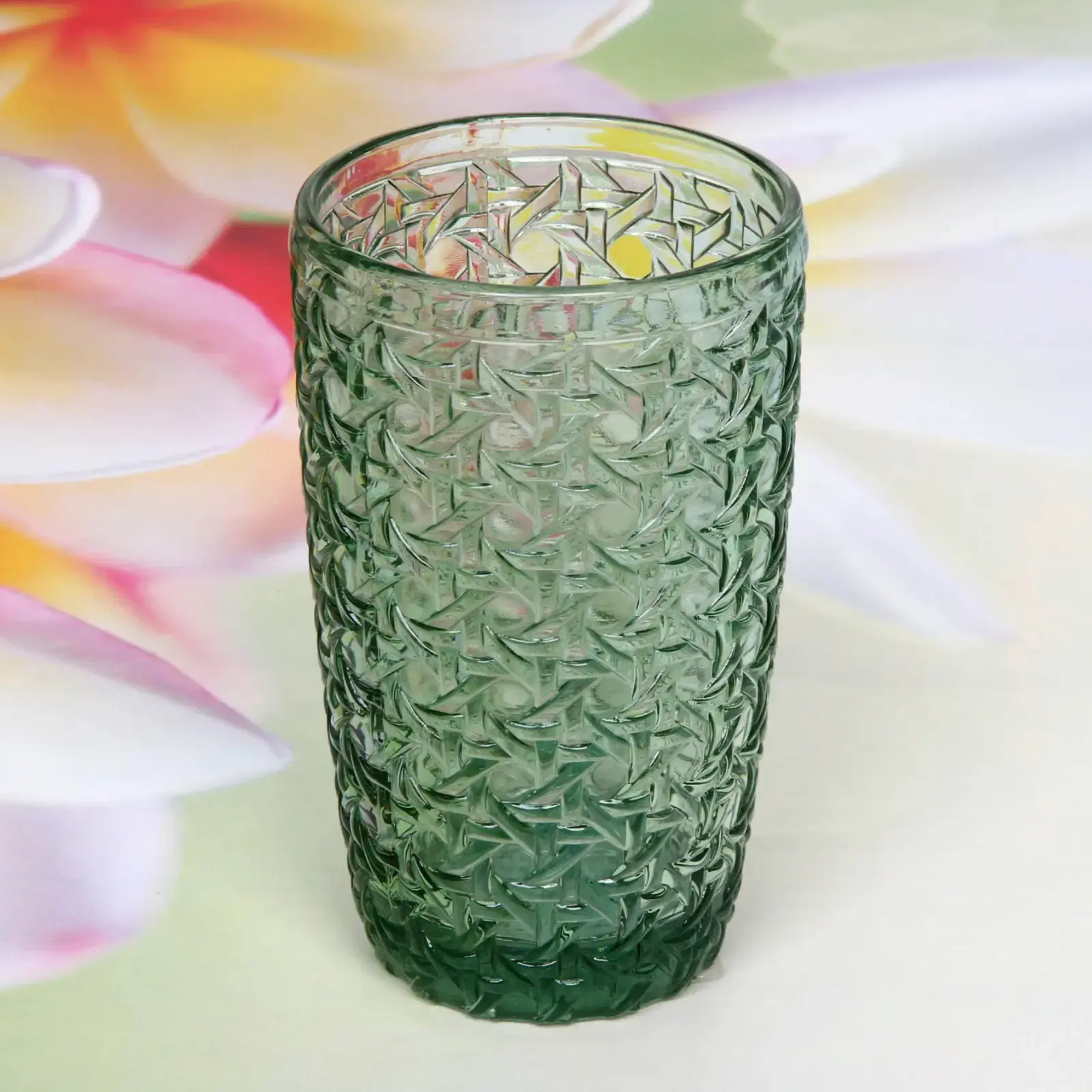 Этот стильный стакан объемом 380 мл станет не только практичным, но и эстетически привлекательным элементом вашей кухонной посуды. Его рельефный узор и градиентный зеленый цвет придают ему уникальный вид, который украсит любой стол. Используйте его для подачи напитков, коктейлей или как элемент декора — он отлично впишется в любой интерьер.