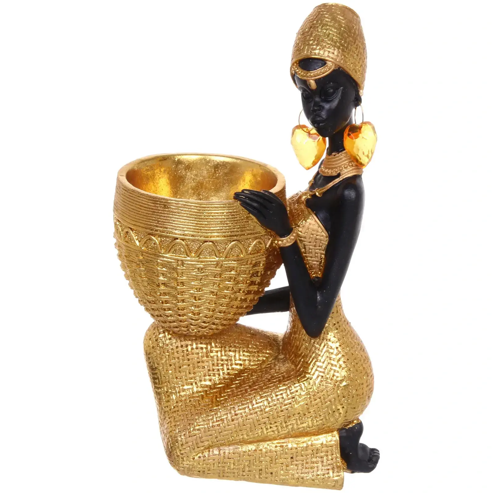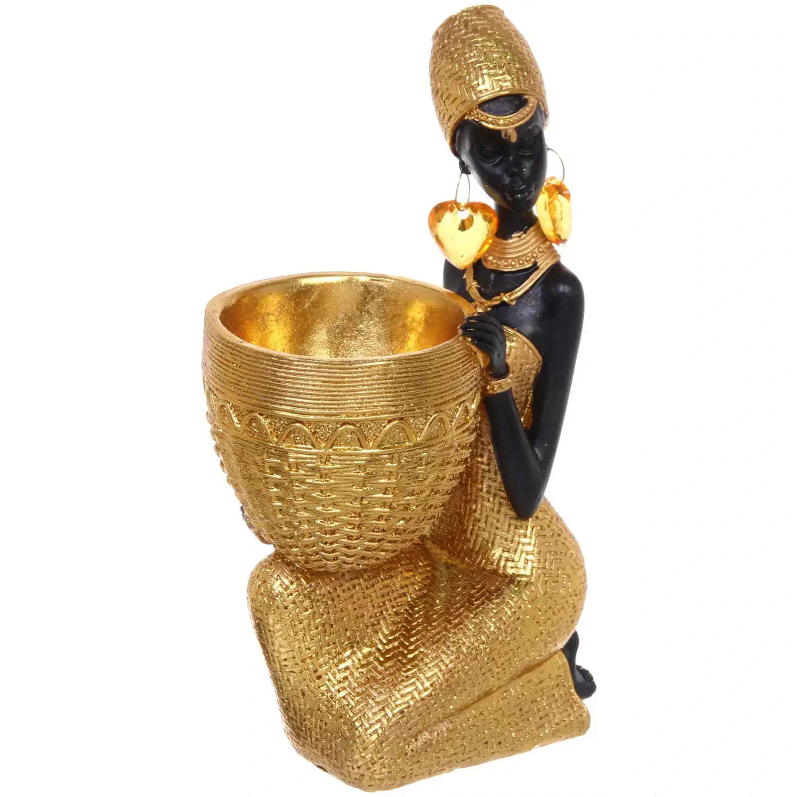 Статуэтка изображает женщину, сидящую на корточках и держащую золотую чашу. Она прекрасно впишется в любой интерьер, будь то гостиная, спальня или офис. Используйте её как самостоятельный элемент декора или в сочетании с другими предметами для создания гармоничного пространства. Эта фигурка станет отличным акцентом на полке, столе или комоде.