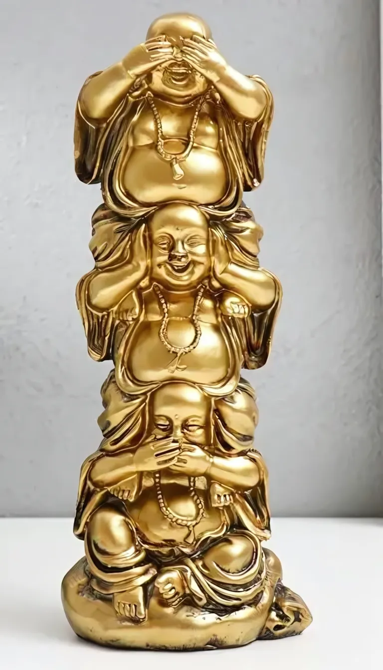 Статуэтка «Три Хотея» — это не просто изящный декор, а глубокий символ мудрости и гармонии, приносящий в дом философию «не вижу зла, не слышу зла, не говорю зла». Её античный золотистый оттенок и искусственно состаренная поверхность создают атмосферу умиротворения и спокойствия, делая её идеальным подарком для ценителей восточной эстетики и философии.