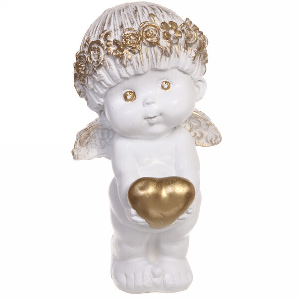 Эта изысканная статуэтка из гипса «Ангел с сердцем» высотой 23 см станет прекрасным дополнением вашего интерьера. Она выполнена в белом цвете с золотыми элементами, что придаёт ей особую элегантность и романтичность. Фигурка изображает младенца-ангела, который держит в руках золотое сердце, что символизирует любовь и заботу. Такой элемент декора не только украсит ваш дом, но и станет замечательным подарком для близких.
