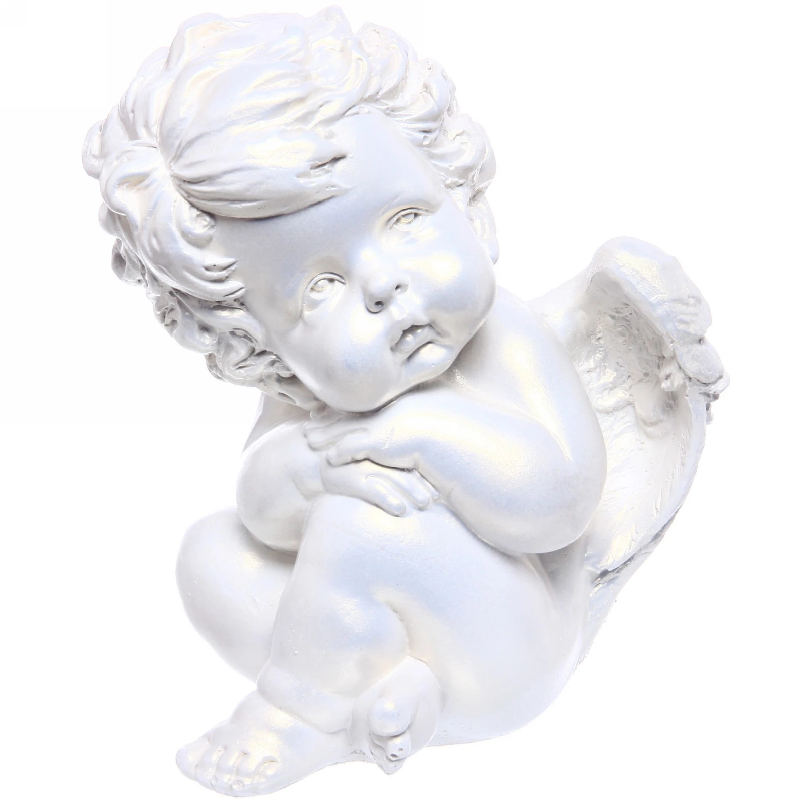 Статуэтка ангела задумчивого из гипса, 16 см, перламутрово-белый цвет, для интерьера и подарка