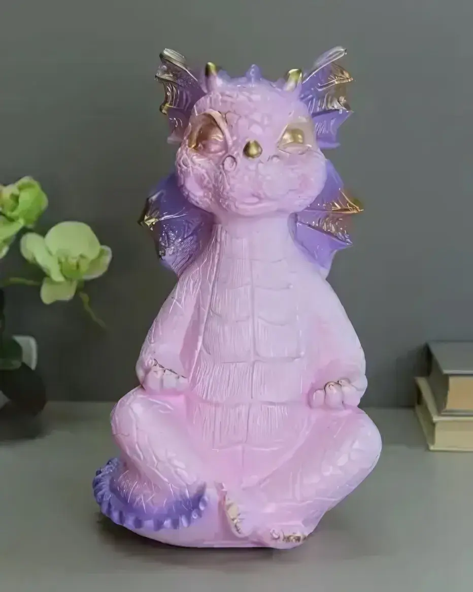 Статуэтка "Дракон Дзен" из гипса станет ярким акцентом вашего дома или офиса, добавив в пространство атмосферу уюта и умиротворения. Выполненная в сиренево-розовой гамме с утонченными золотистыми деталями, она легко привлечет внимание гостей и станет оригинальным подарком на любой праздник.