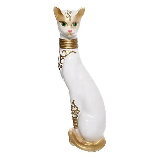 Эта изысканная статуэтка станет идеальным подарком для любителей кошек и ценителей оригинального декора. С её помощью вы сможете добавить уют и стиль в любое помещение. Белый цвет с золотыми и зелеными деталями придаёт изделию элегантный вид, а художественное оформление делает его настоящим произведением искусства.
