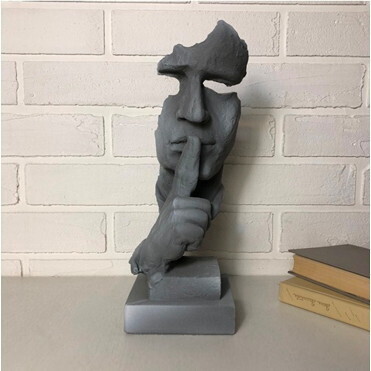 Создайте атмосферу спокойствия и гармонии в вашем доме с помощью статуэтки из гипса «Тишина». Эта уникальная скульптура высотой 34 см выполнена в сером цвете и представляет собой абстрактное лицо с пальцем на губах, что символизирует тишину и умиротворение. Она станет не только стильным акцентом в интерьере, но и отличным подарком для близких.