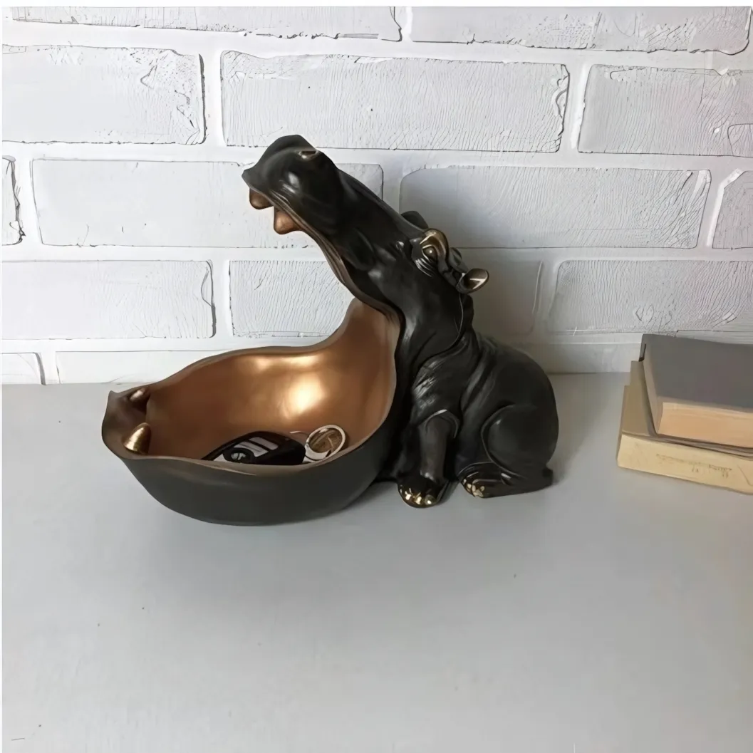 Эта детализированная статуэтка в виде бегемота — не просто украшение, а практичный и стильный органайзер для вашего дома. Открытая пасть животного служит удобной подставкой для хранения ключей, колец, монет и других мелких предметов, которые так часто теряются. Она поможет навести порядок в прихожей, на туалетном столике или рабочем столе, добавив пространству индивидуальности.