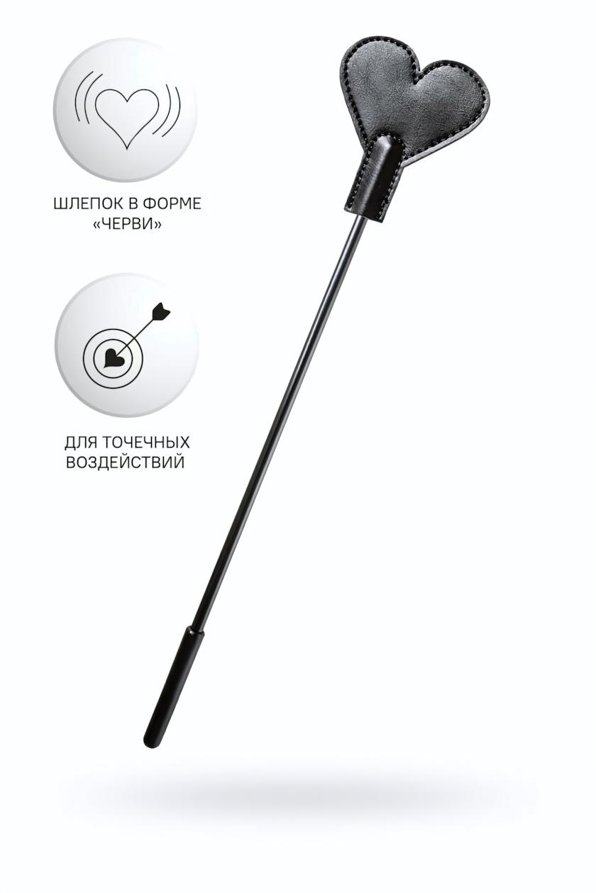 Стек anonymo черный 35 см, искусственная кожа, наконечник сердце, для ощутимого наказания