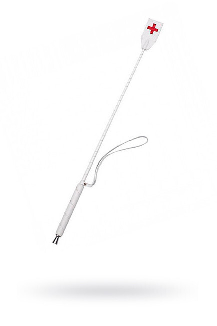 Стек кожаный 'SITABELLA', длина 70см, белый с красным крестом, для пары