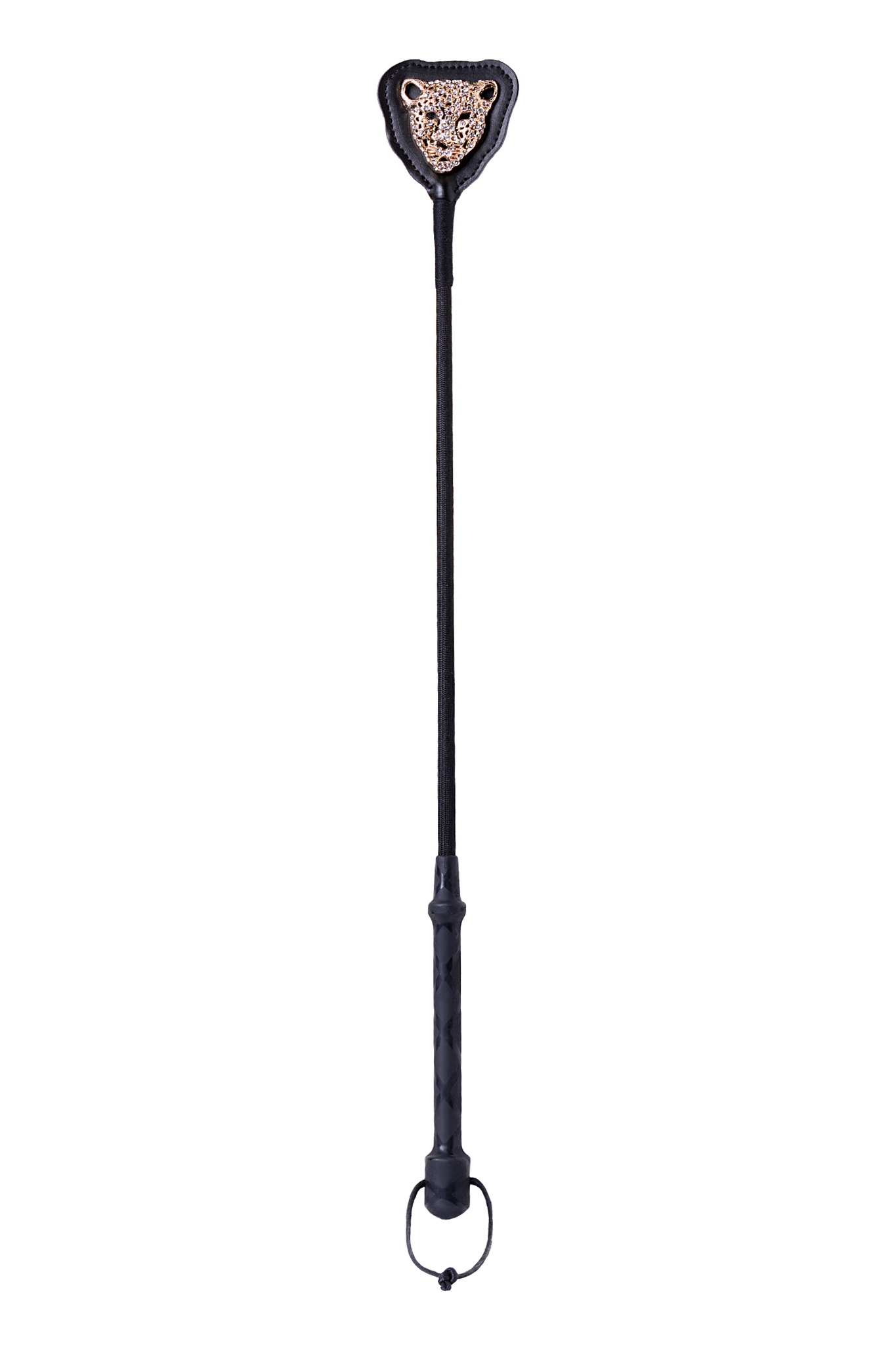 Стек БДСМ с головой леопарда, кожаный шлепок, 21 см, цвет черный/золото