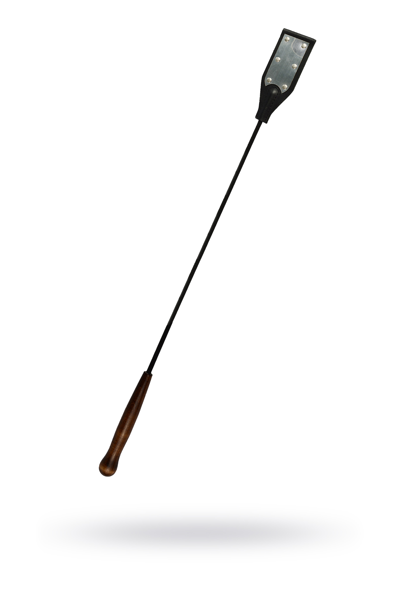 Стек для БДСМ из натуральной кожи с металлической отделкой, деревянная ручка 76 см, цвет чёрный