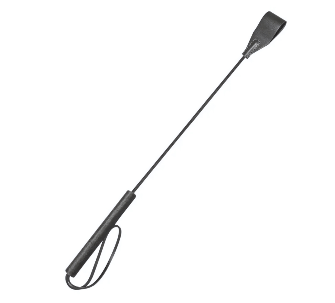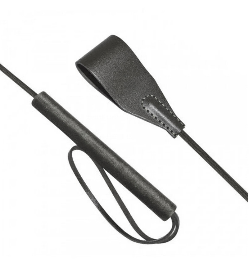 Стек длиной 77 см оснащен гибким, но прочным хлыстом, который обеспечивает отличную маневренность. Петлеобразная хлопушка, выполненная из натуральной кожи, добавляет не только эстетическую привлекательность, но и функциональность. Удобная бархатистая рукоять, покрытая велюровой тканью, обеспечивает надежный захват, а ремешок-петля на рукояти позволяет фиксировать стек на запястье, что делает его использование еще более комфортным.