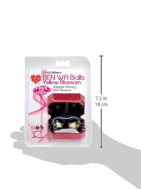 Каждый шарик имеет диаметр 2,5 см, что делает их удобными для использования. В комплект входят два шарика, которые помещены в стильную шкатулку Yellow Blossom. Это не только практично, но и позволяет легко хранить и транспортировать аксессуары. Подарите себе или своим близким незабываемые моменты удовольствия с этими уникальными шариками!