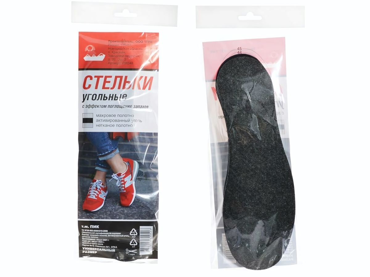 Стельки угольные «PIK 048» универсальные, размер 36-45, антибактериальные, с активированным углём