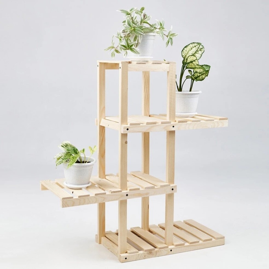 - Высокая нагрузка: Каждая из четырех полок выдерживает вес до 25 кг, что позволяет размещать даже тяжелые горшки с цветами или книги.