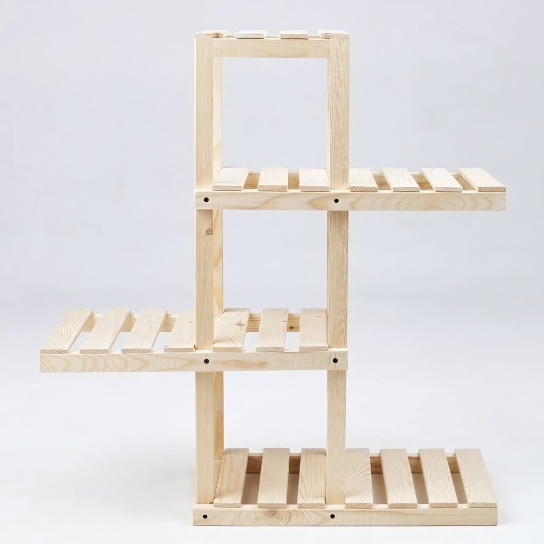 Этот стильный и функциональный стеллаж из натуральной сосны поможет вам организовать пространство, расставить книги, комнатные растения, предметы декора или садовый инвентарь. Его открытая конструкция обеспечивает легкий доступ к вещам и визуально не загромождает интерьер.