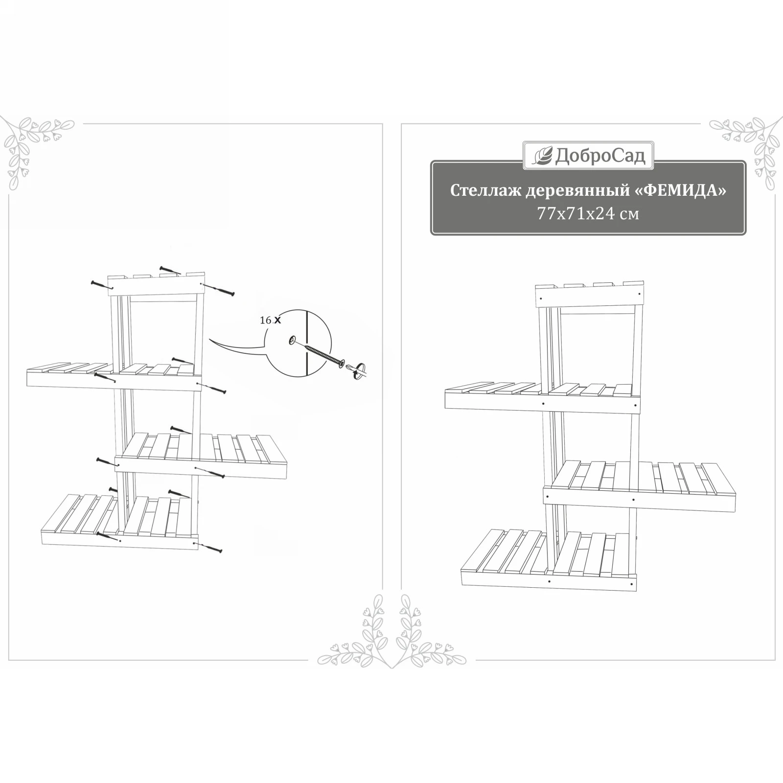 - Простота сборки: Все необходимые детали и крепеж (16 саморезов) входят в комплект. Четкая инструкция сделает сборку быстрой и легкой.