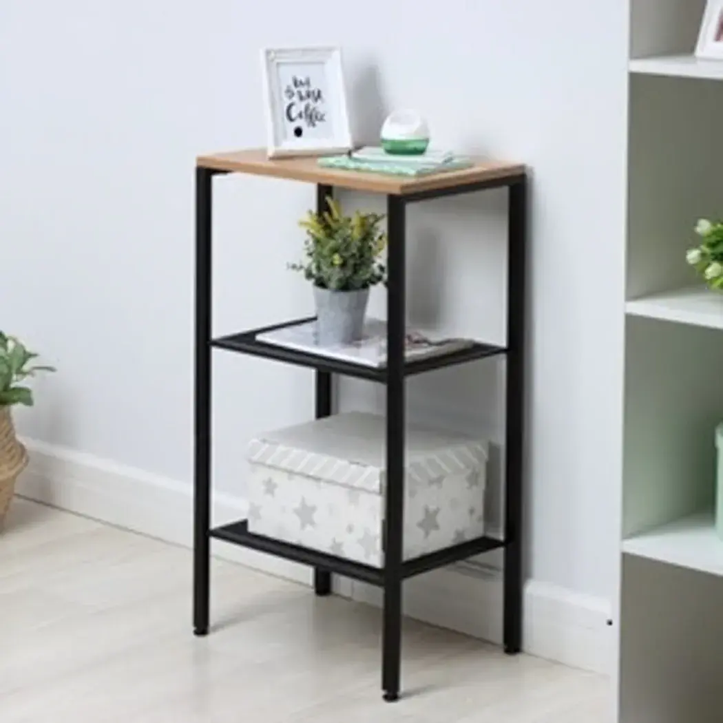 Стеллаж имеет три полки, которые обеспечивают достаточно места для размещения книг, декоративных элементов или других предметов. Верхняя полка выполнена из светлого дерева, что добавляет тепла и уюта в обстановку. Стеллаж подходит для использования в различных помещениях, включая гостиную, спальню или рабочий кабинет.