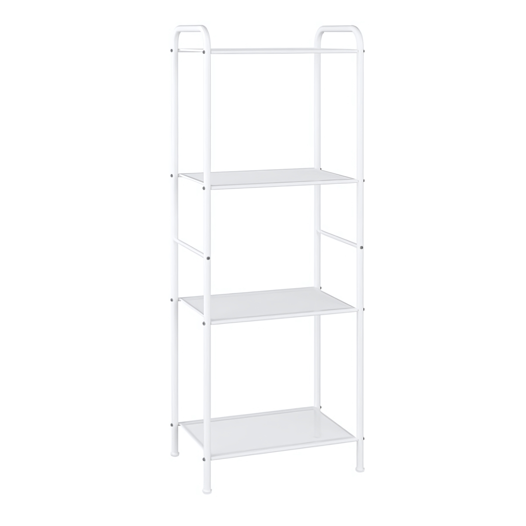 Стеллаж имеет четыре полки, что позволяет эффективно использовать вертикальное пространство. Его гладкая поверхность легко очищается, что делает уход за ним простым и быстрым. Вы можете разместить его в любом месте, так как он свободно стоящий и не требует дополнительной установки.