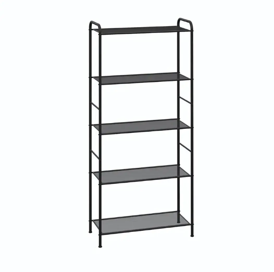 Стеллаж имеет пять уровней, выполненных из мелкоячеистой сетки, что позволяет удобно размещать и видеть содержимое. Он идеально подходит для хранения книг, документов, декоративных элементов и других предметов. Благодаря вертикальной ориентации, стеллаж занимает минимальное пространство, что делает его подходящим для любых помещений.
