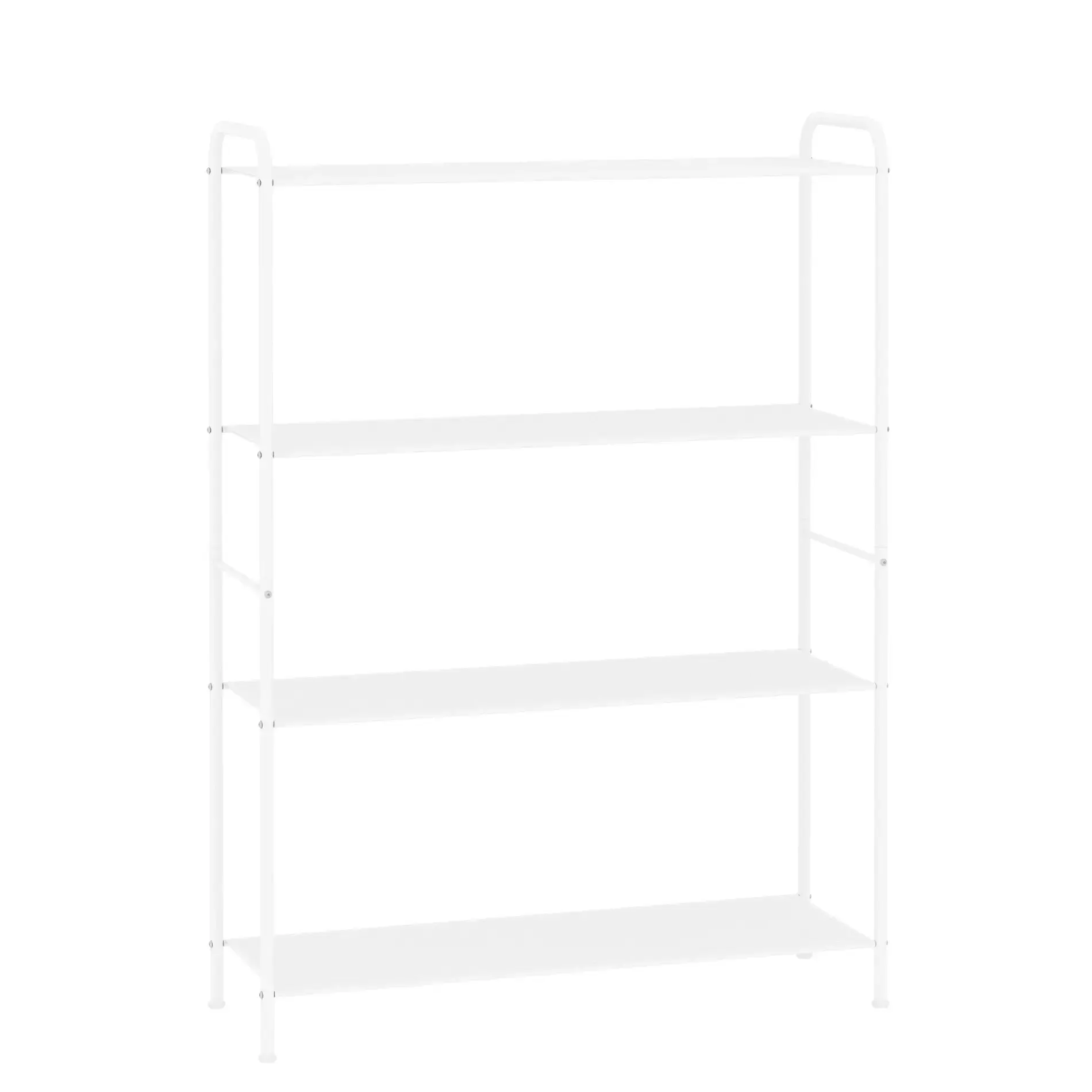 Стеллаж выполнен из прочного металла, что гарантирует его устойчивость и долговечность. Белый цвет придаёт ему свежий и современный вид, а аккуратно обработанные края обеспечивают безопасность при использовании. Этот стеллаж станет не только функциональным, но и стильным акцентом в вашем интерьере.