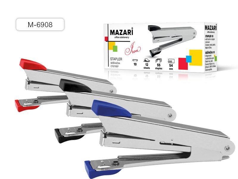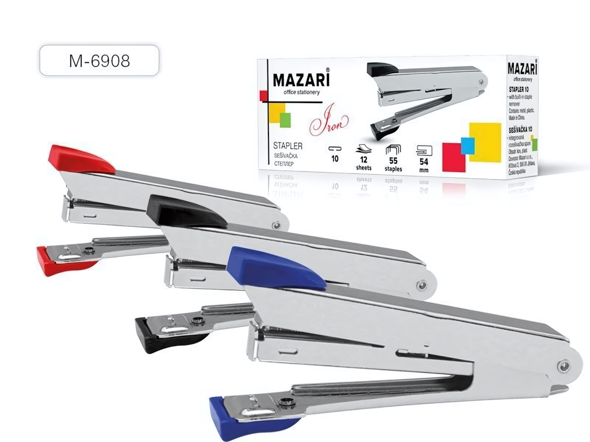 Степлер рассчитан на скобы формата №10, легко заправляется и не требует сложного ухода. Благодаря своей прочной конструкции он станет верным помощником как для повседневной работы с документами, так и для подготовки отчетов, учебных материалов или творческих проектов. Цвет корпуса — в ассортименте (красный, синий, черный), отгружается один товар, оттенок выбирается случайным образом.