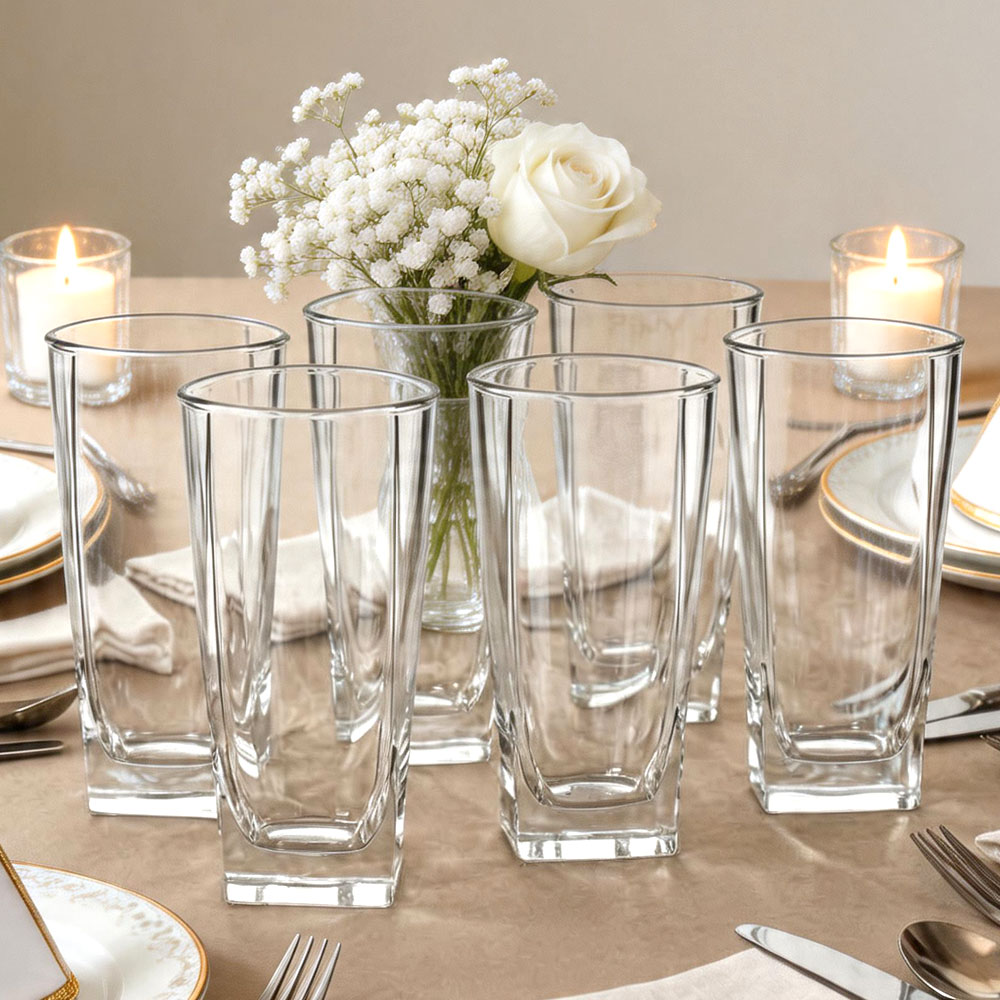 Комплект из 6 стаканов — это отличный выбор для дома и кафе, где важна практичность и стиль. Технология изготовления из высококачественного стекла обеспечивает устойчивость к механическим повреждениям и сохранение прозрачности на долгое время. Стаканы легко сочетать с любой посудой и интерьером — их дизайн универсален и современен.