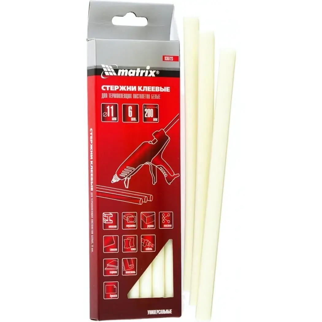 Клеевые стержни 'Matrix' 11х200 мм, белые, 6 штук в упаковке