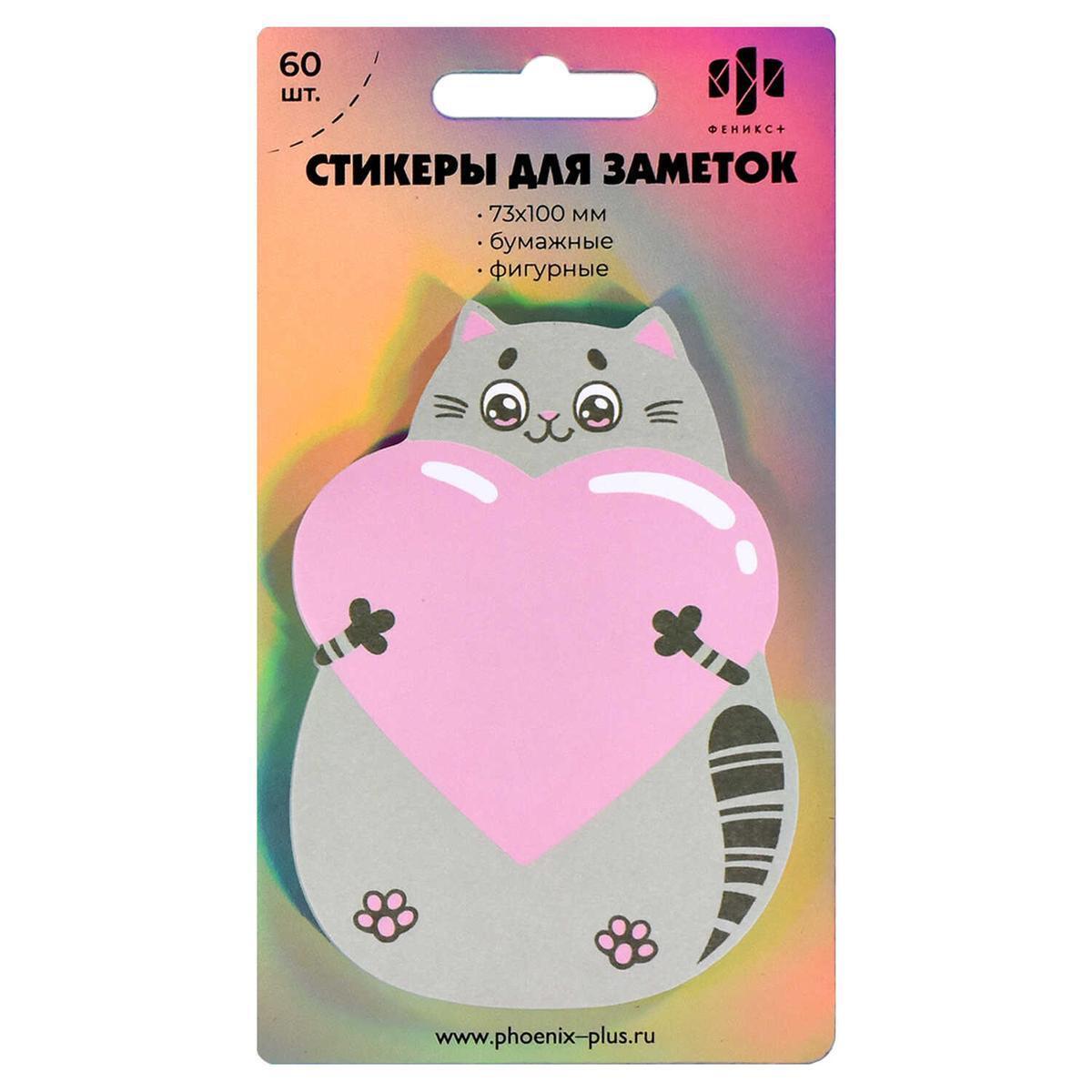 Стикеры фигурные "Котик" 73х100 мм, 60 листов, бумага, серый, розовый — Феникс+