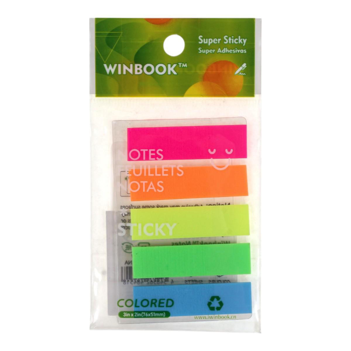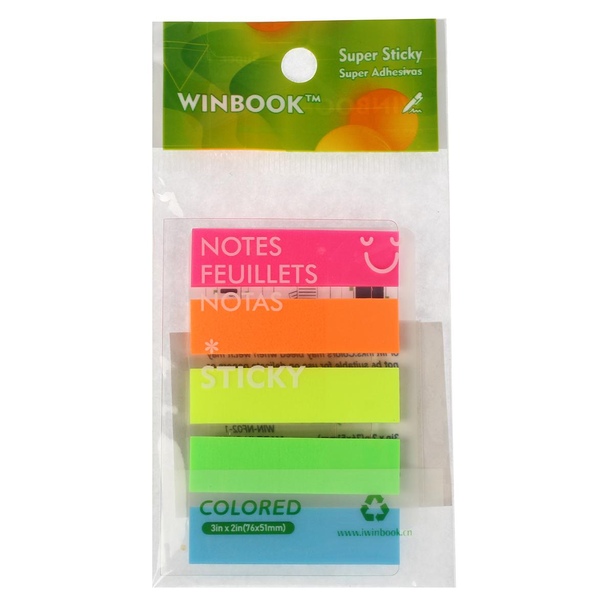 Стикеры пластиковые 'WINBOOK' 76х51мм, 5 цветов, неоновые, супер-липкие