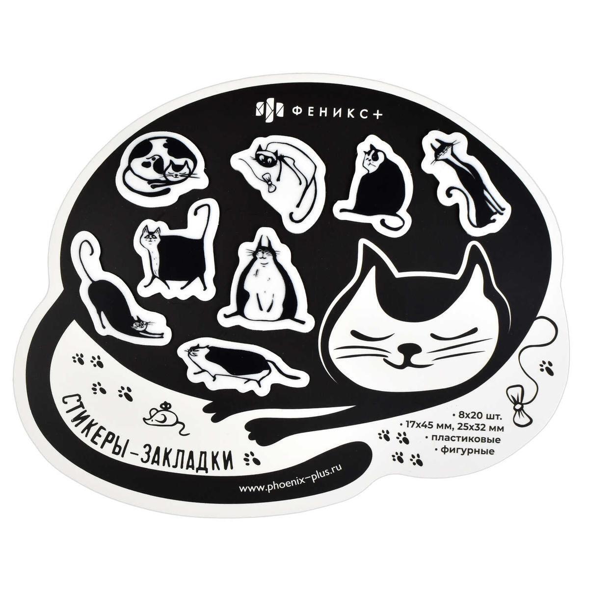 Стикеры закладки "Кот", 160шт, пластиковые, черно-белые, 17х45мм и 25х32мм
