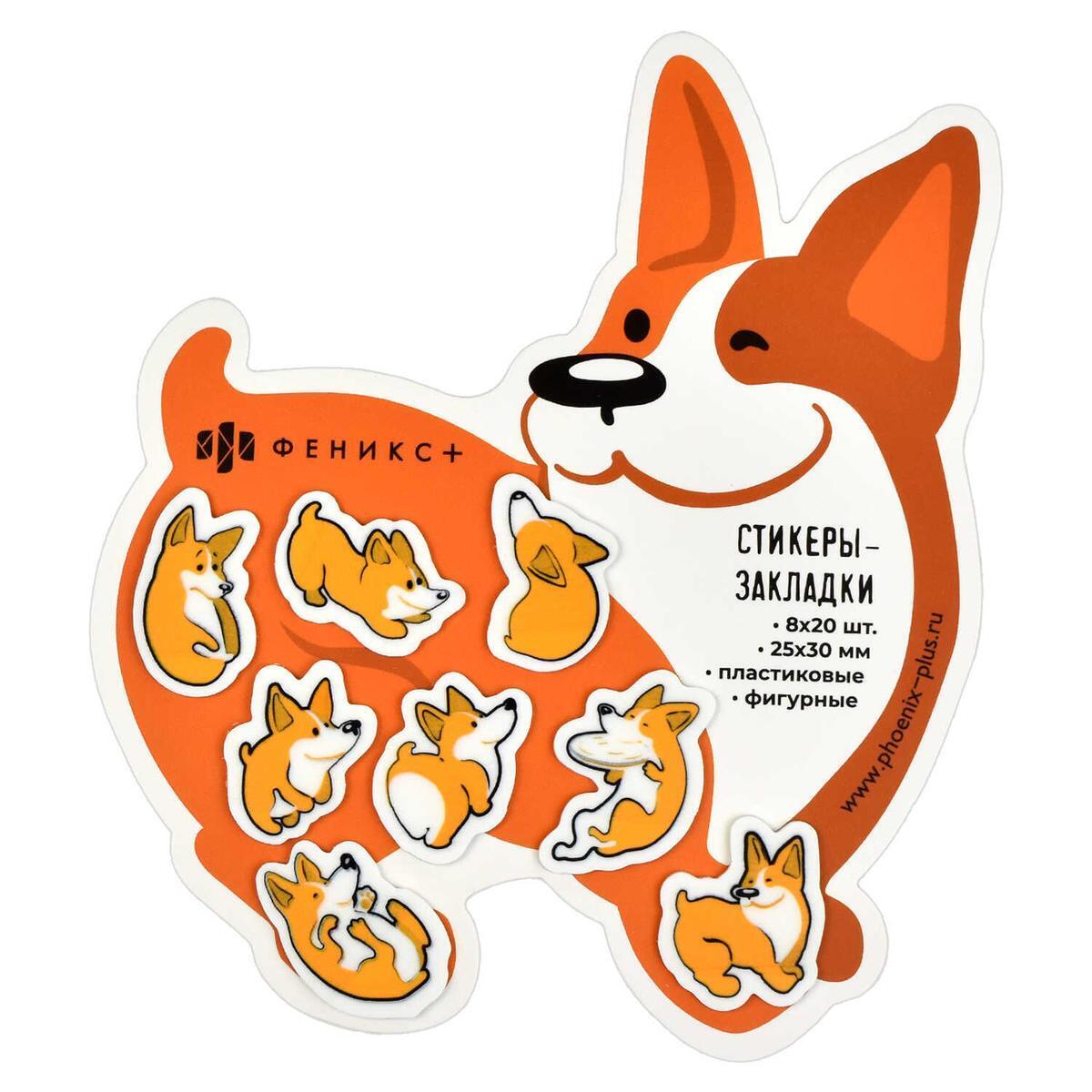 Стикеры-закладки пластиковые 'Корги', 25х30 мм, 160 шт, оранжевый, фигурная вырубка