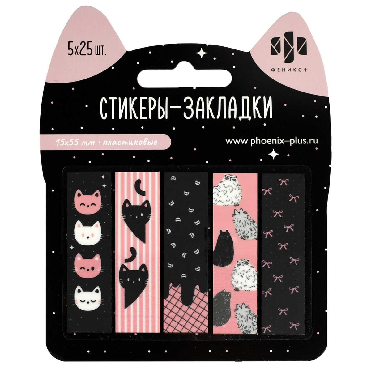 Набор стикеров-закладок пластиковых "Розовые коты", 15х55 мм, 125 шт.