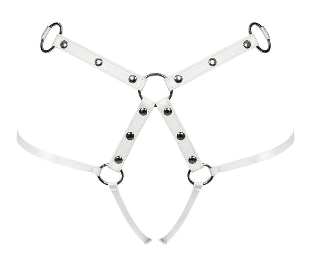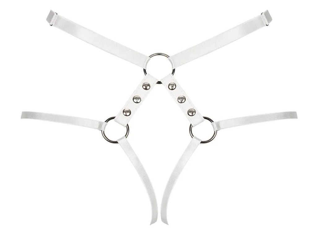 Эротический аксессуар с металлическими заклепками сочетает дерзкий дизайн и комфортную посадку. Идеально подходит для ролевых игр, фотосессий или особых случаев, подчеркивая изгибы тела изысканной игрой ремней.