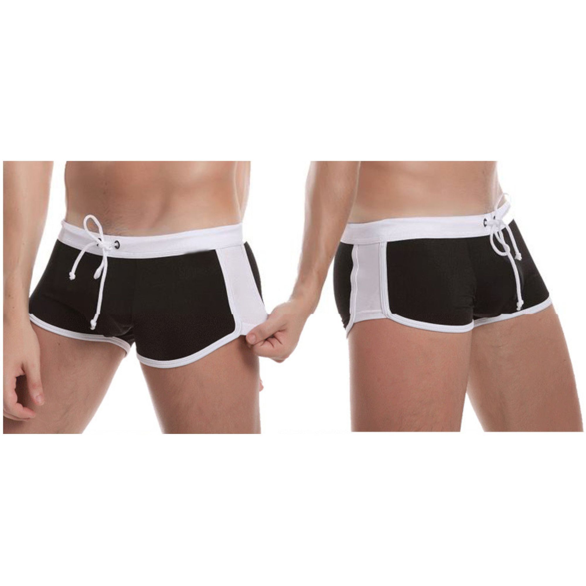 Представляем мужские плавки, которые сочетают в себе элегантный дизайн и практичность. Черный цвет с контрастным белым поясом подчеркнет вашу уверенность на пляже или в бассейне.