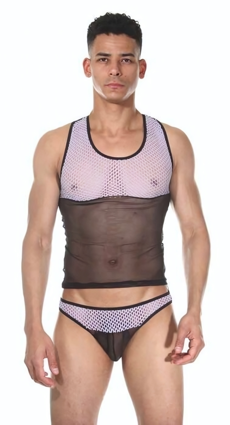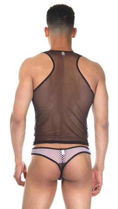 Комплект мужского белья La Blinque: майка и трусы-танга, сетчатый материал, размер S-M, черный с белым